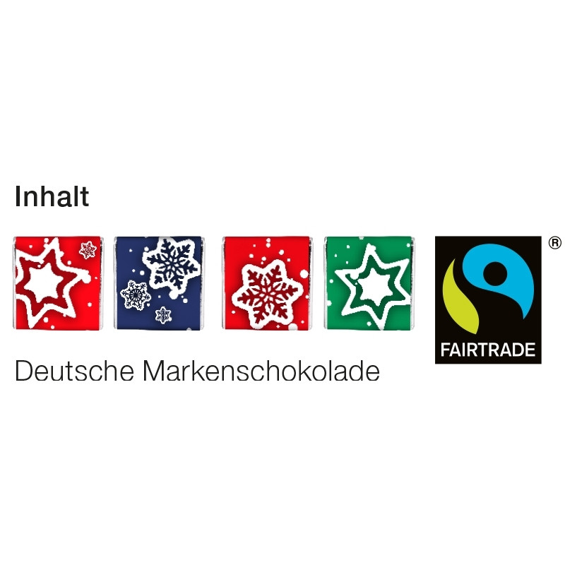 Inhalt 24 Vollmilch Schokoladentäfelchen mit Fairtrade-Zutaten in deutscher Markenqualität, 120 g Saisonartikel – solange der Vorrat reicht!