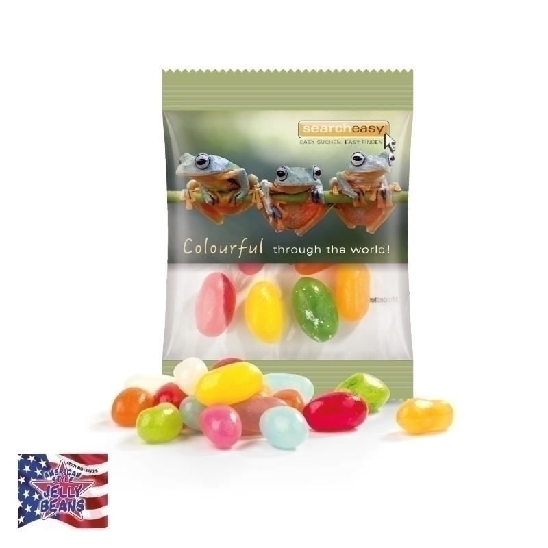 American Style Jelly Beans in Tuete aus weißer oder transparenter Folie, individuell bedruckt