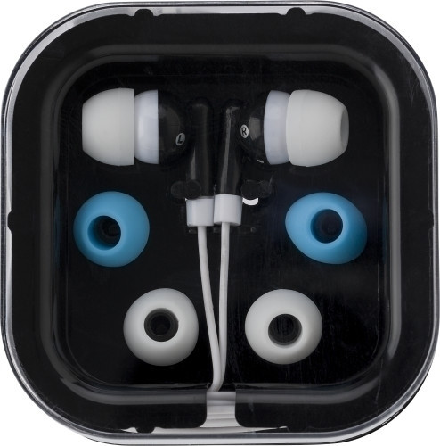 Kopfhörer 'Universal' aus Kunststoff/Metall, inklusive Verlängerungskabel 1m und zwei Paar Ersatz-Kopfhörerschutz in Kunststoff-Box