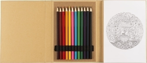 Malmappe 'Atelier' aus Karton mit 10 Bildern zum Ausmalen, und inklusive 40 Blankoseiten & 12 Buntstiften.