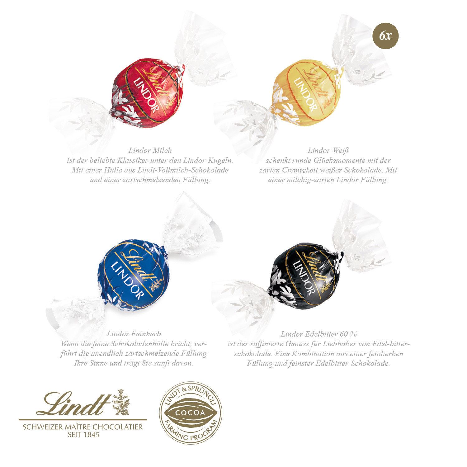 Inhalt Pralinés (ca. 75 g) von Lindt Lindor mit einer zartschmelzenden Füllung. Geschmacksrichtungen gemischt