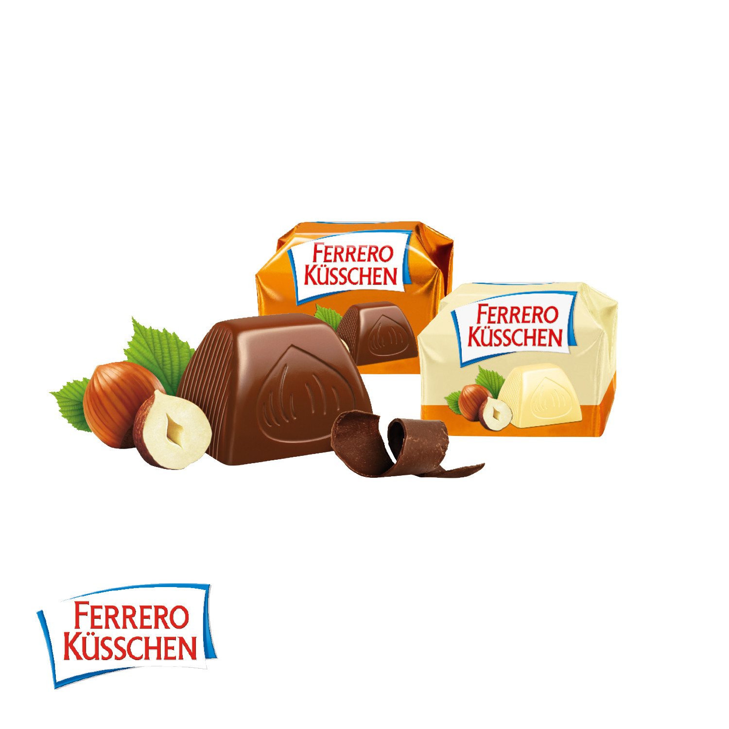 Inhalt 24 Stück Ferrero Küsschen (ca. 216 g). Geschmacksrichtungen: Klassik und Weiss gemischt