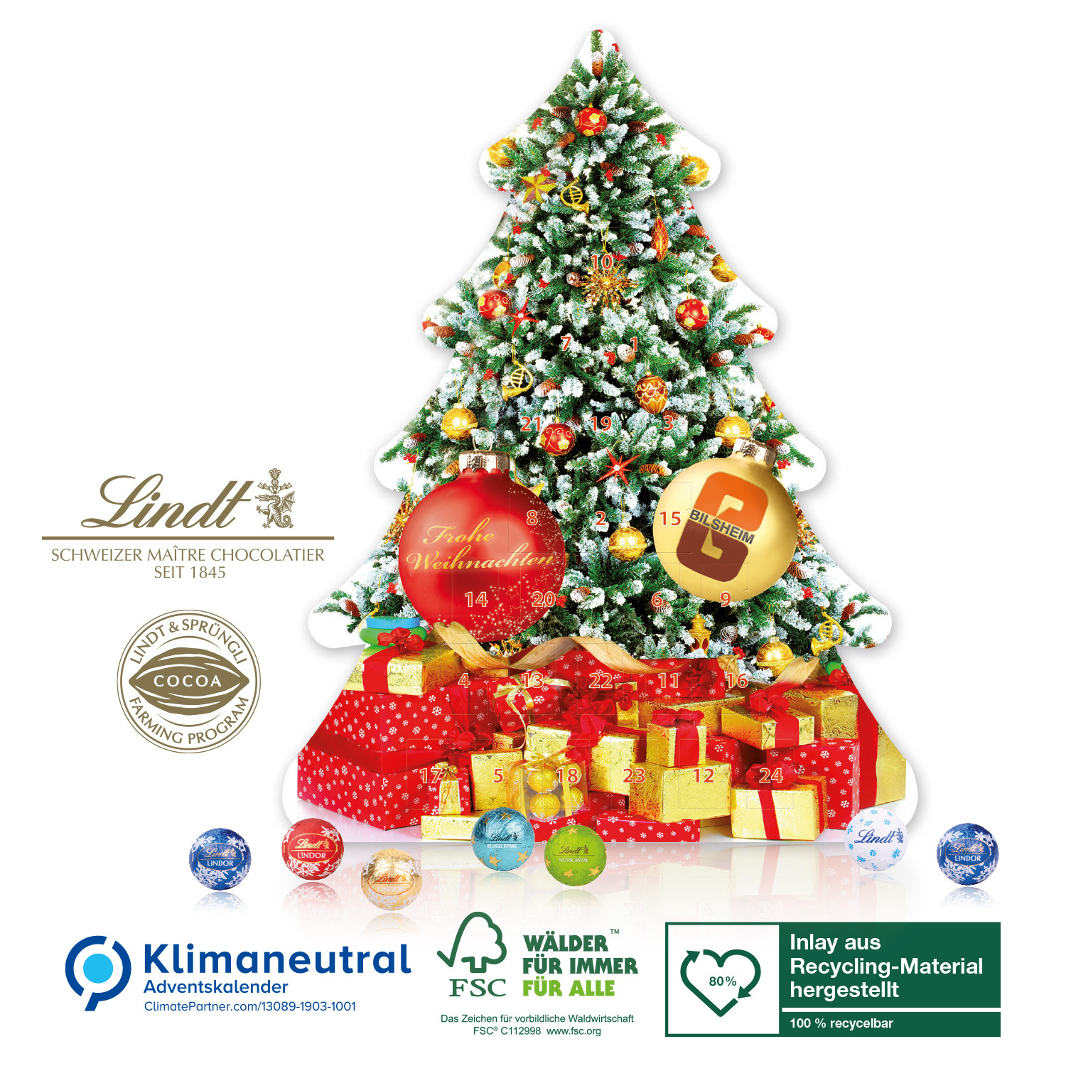 Adventskalender Lindt Weihnachtsbaum, Klimaneutral, FSC®, Inlay aus recyceltem Material