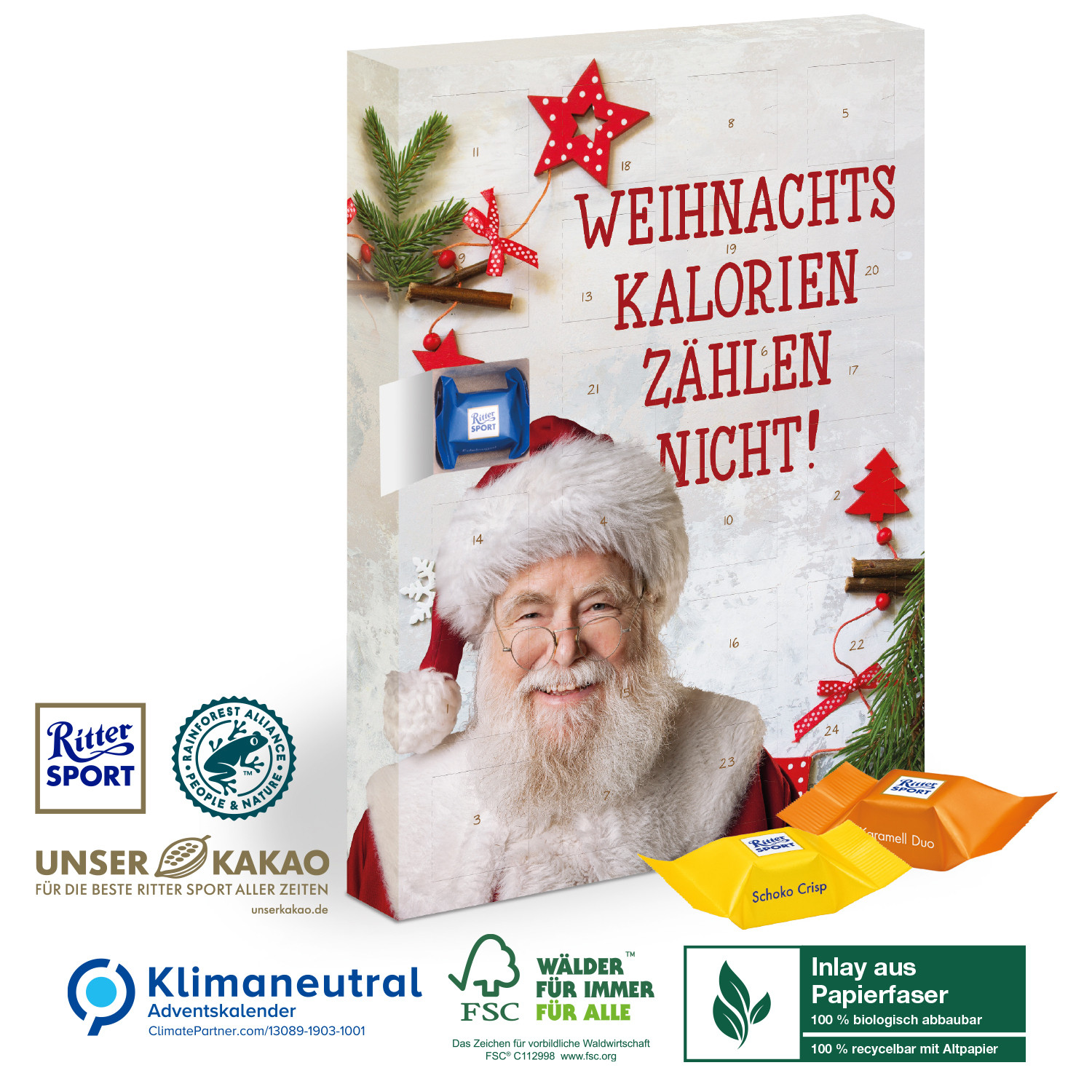 Adventskalender mit Ritter SPORT Schokowürfel, Klimaneutral, FSC®, Inlay aus Papierfaser