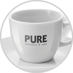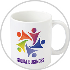 Tassen werden mit speziellem Papier bedruckt, welches mit Hilfe der Seidensiebdrucktechnik auf das Produkt gelangt. Das Papier wird auf das Produkt geklebt und in einem Ofen erwärmt. Das Erwärmungsprozess härtet die Tinte auf der Tasse aus.