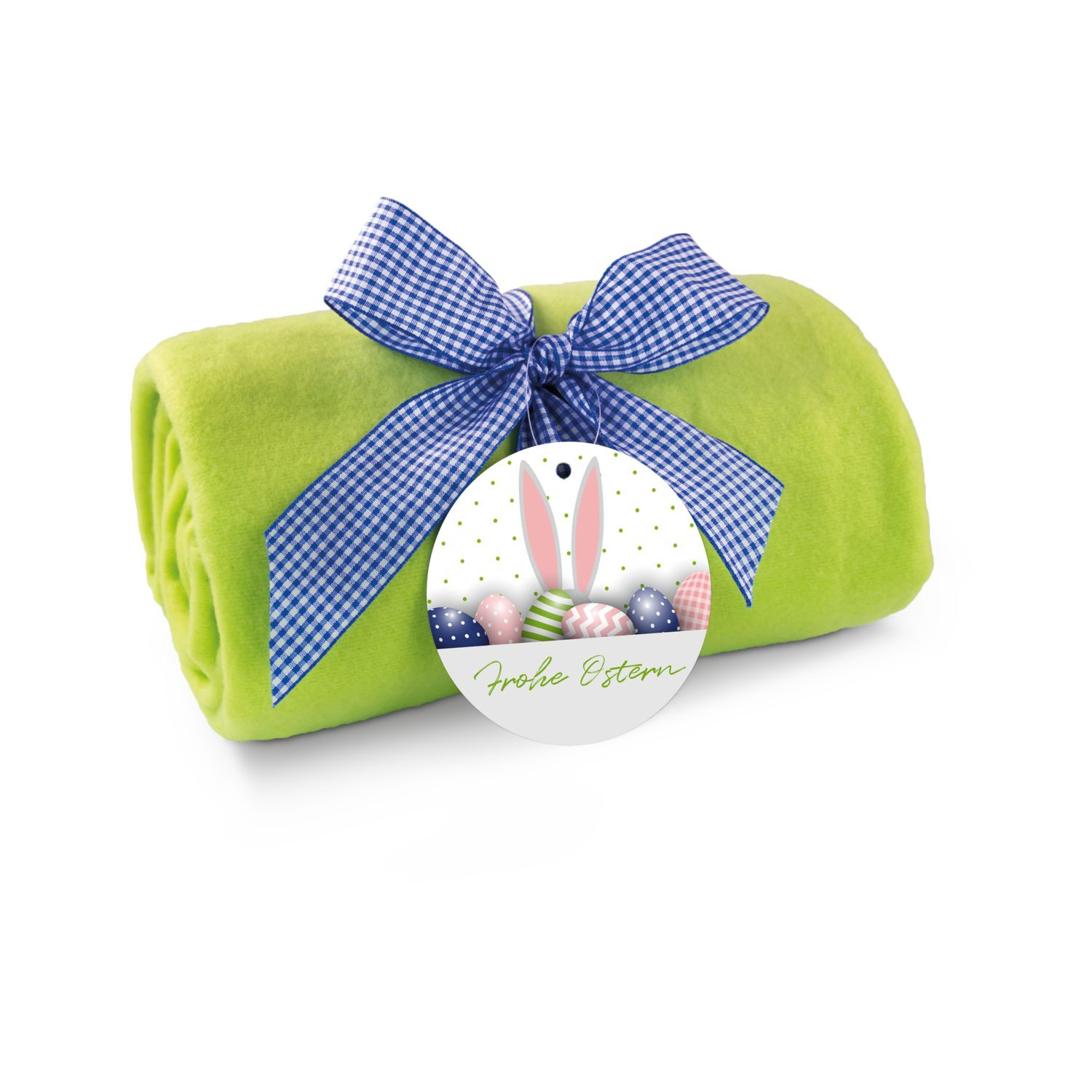 Fleecedecke Frohe Ostern - apfelgrün - 120 x 150 cm, 180 g/m²
