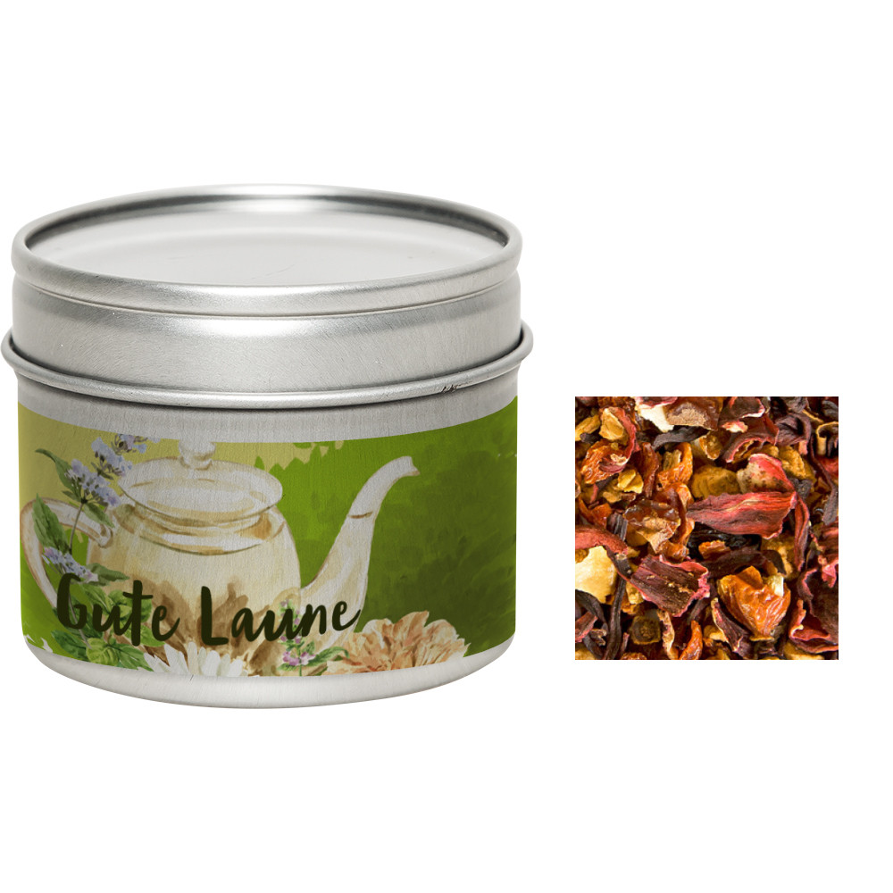 Bio Früchtetee gute Laune, ca. 30g, Metalldose mit Sichtfenster