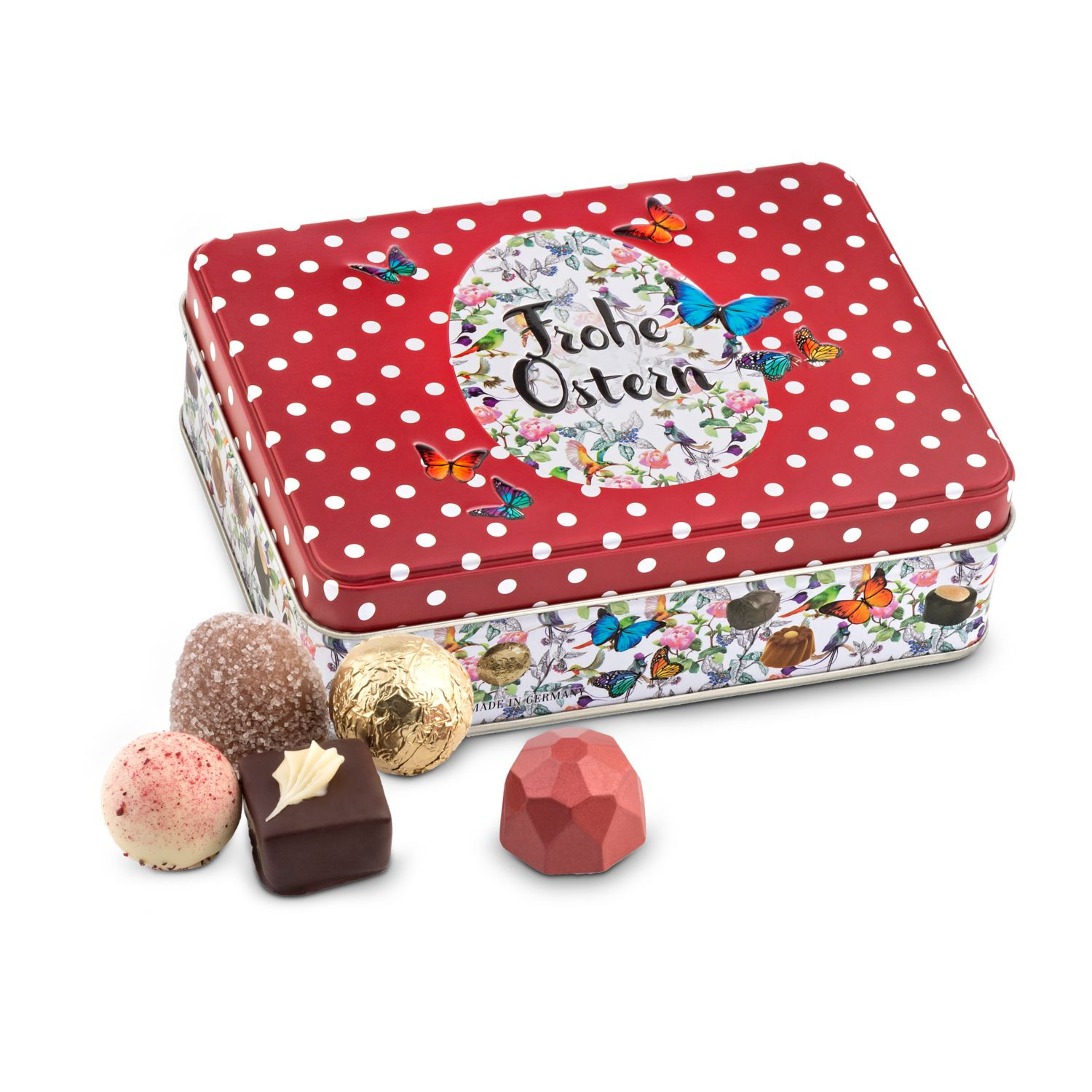 Geschenkartikel / Präsentartikel: Frohe Ostern - Pralinendose mit 125 g