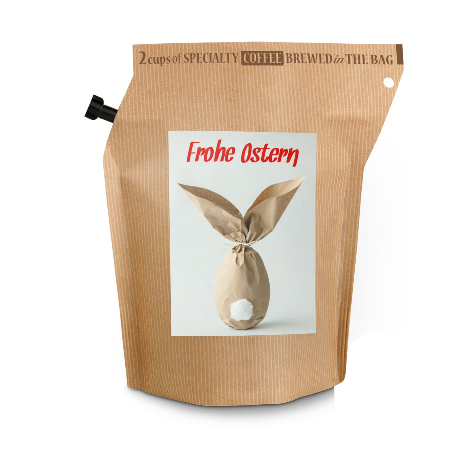 Verschenken Sie Fröhlichkeit und Genuss zur Osterzeit: kleines Präsent, große Wirkung - und das im Frühling! Mit diesen hübschen Brühbeuteln mit fairtrade Bohnen aus Honduras lässt sich die Hektik des Alltags schnell vergessen. Einfach heißes Wasser einfüllen, ziehen lassen, durch den integrierten Filter ausgießen und genießen. Kein Instant-Produkt! Pure Osterfreude. Ideal auch für das Büro oder für unterwegs. Ein Beutel ergibt zwei Tassen und kann wiederverwendet werden. Erhältlich mit 5 verschiedenen Oster-Aufklebern - oder natürlich mit Ihrer eigenen Idee. Dann fragen Sie uns einfach an!