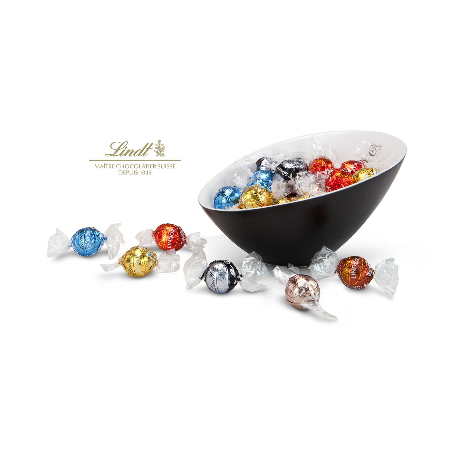 Die edle schwarz-weiße Schale VONGOLE von ASA Selection ist gefüllt mit 36 Lindt Lindorkugeln in verschiedenen Sorten (insg. ca. 450 g).