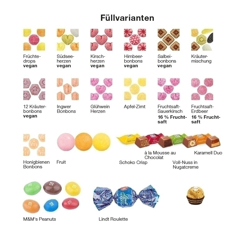 Papierdose biologisch abbaubar, aus schnell nachwachsenden Rohstoffen mit verschiedenen Füllvarianten, rundum mit Papieretikett, klimaneutral, individuell bedruckt. Mit Originalitätsverschluss. Inhalt: Ungewickelte Bonbons in Nostalgieform, 120 g. Gegen Aufpreis: Kaudragee der Marke Mentos in der Geschmacksrichtung Fruit, 130 g; sechs Schokowürfel der Marke Ritter SPORT, gemischt, 43 g; Peanuts der Marke M&M´s, 120 g; drei knusprige Nuss-Praline der Marke Ferrero, 36 g oder vier Lindor Milch Kugeln der Marke Lindt & Sprüngli, 50 g. Haltbarkeit: Bonbons: 36 Monate; Honigbienen: 24 Monate; Mentos: 12 Monate; Ritter SPORT: 6 Monate; M&M's Peanuts: 4 Monate; Ferrero Rocher: 3 Monate; Lindt: 6 Monate. Preise: Euro / Stück inkl. 4-c Euroskala Druck zzgl. Drucknebenkosten. Kühl und trocken lagern.
