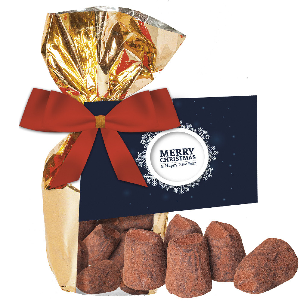 Kakao Trüffel Konfekt, ca. 120g, Goldfolienbeutel mit Werbekarte