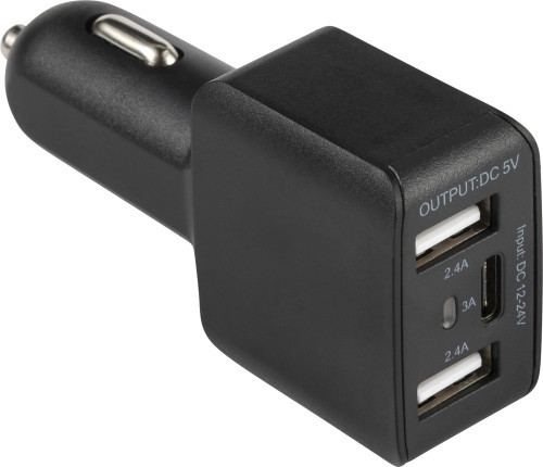 KFZ-Ladestecker 'Togo' aus ABS Kunststoff mit drei Anschlüssen: zwei USB-Standard und ein USB-C