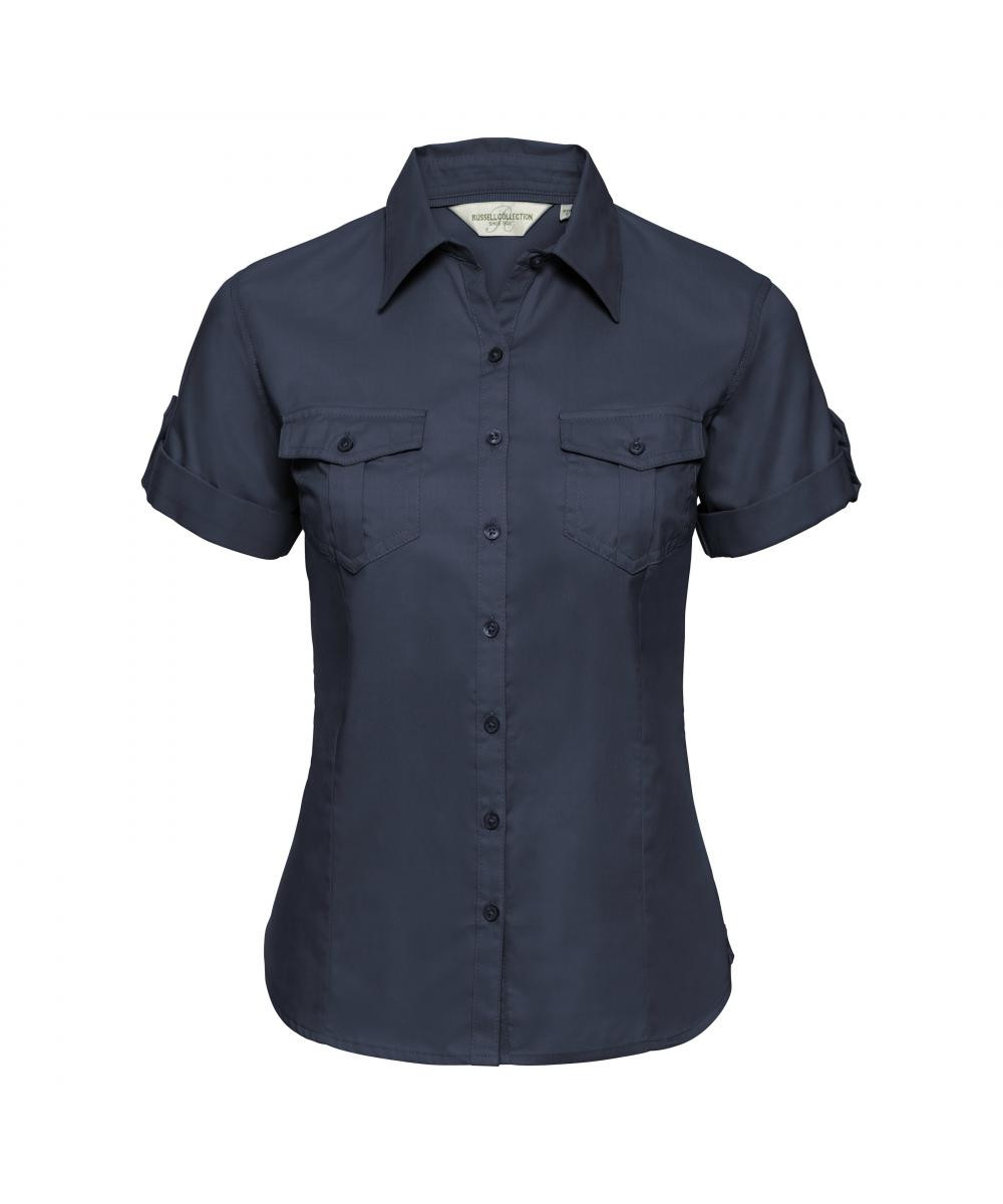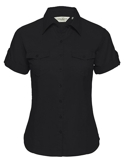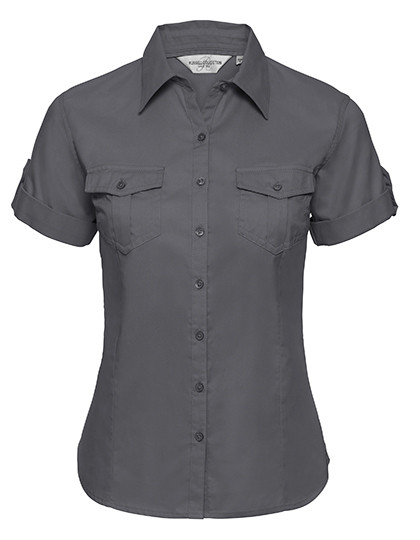 Ladies` Roll Short Sleeve Fitted Twill Shirt