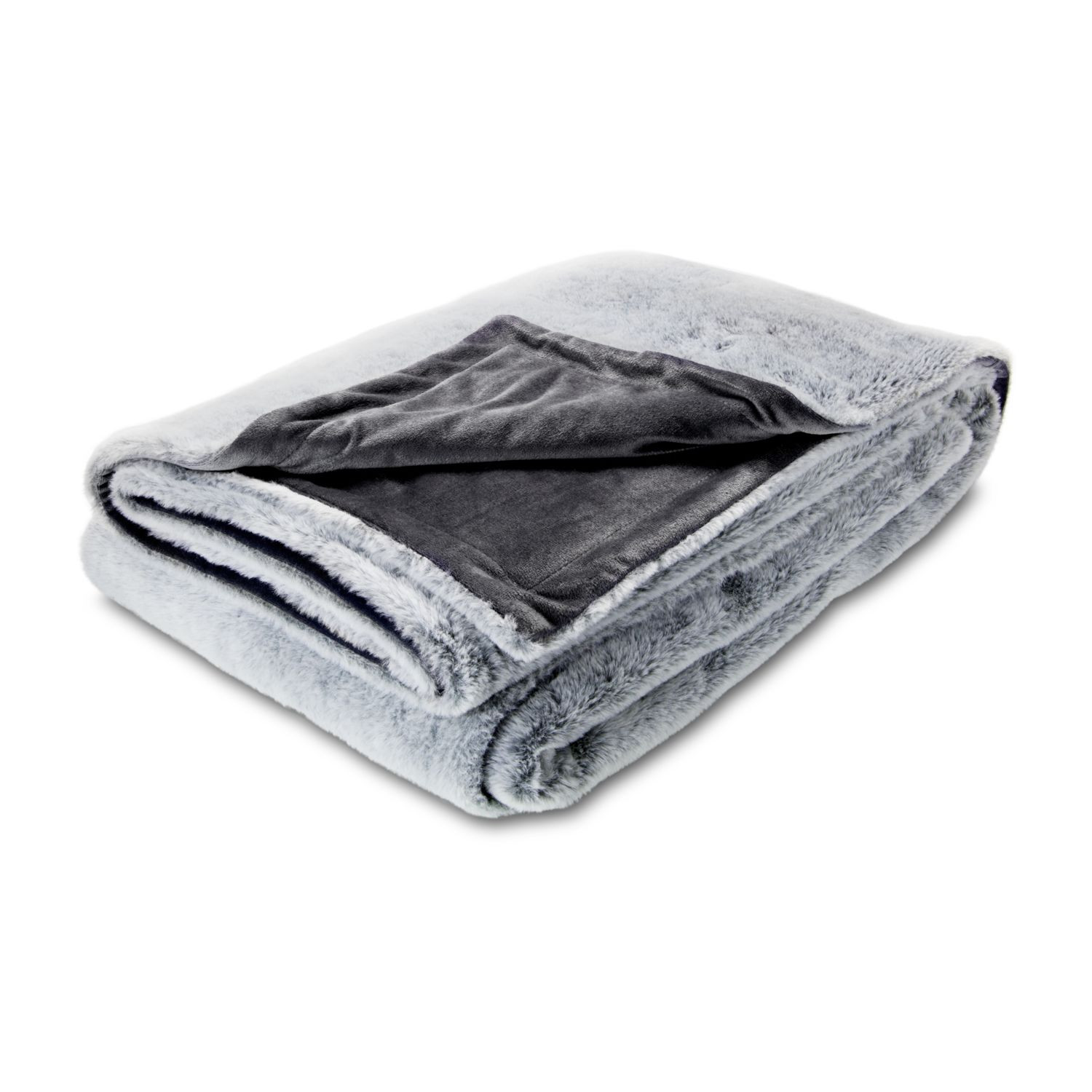 Luxus für alle Sinne und ein Must Have für Ihren Wohnbereich! Diese Premium Decke im aufwendigen Doubleface-Look besteht aus einer super flauschigen Faux-Fur-Seite und einer seidig-glatten Nicki-Seite. Der lange, seidenfeine Flor der Webpelz-Seite ist extra kuschelig, schmeichelnd und voluminös und erinnert an weiches Kaninchenfell. Die besondere Kombination aus dunkler „Unterwolle“ und leichtgrauen Spitzen verleiht der außergewöhnlich edlen Wohndecke die authentische Lebendigkeit eines echten Pelzes, welcher angenehm leicht und trotzdem außergewöhnlich warm und geschmeidig ist. Jede Decke ist einzeln mit Satinband und im Polybeutel verpackt. (Zertifiziert nach STANDARD 100 von OEKO-TEX®)