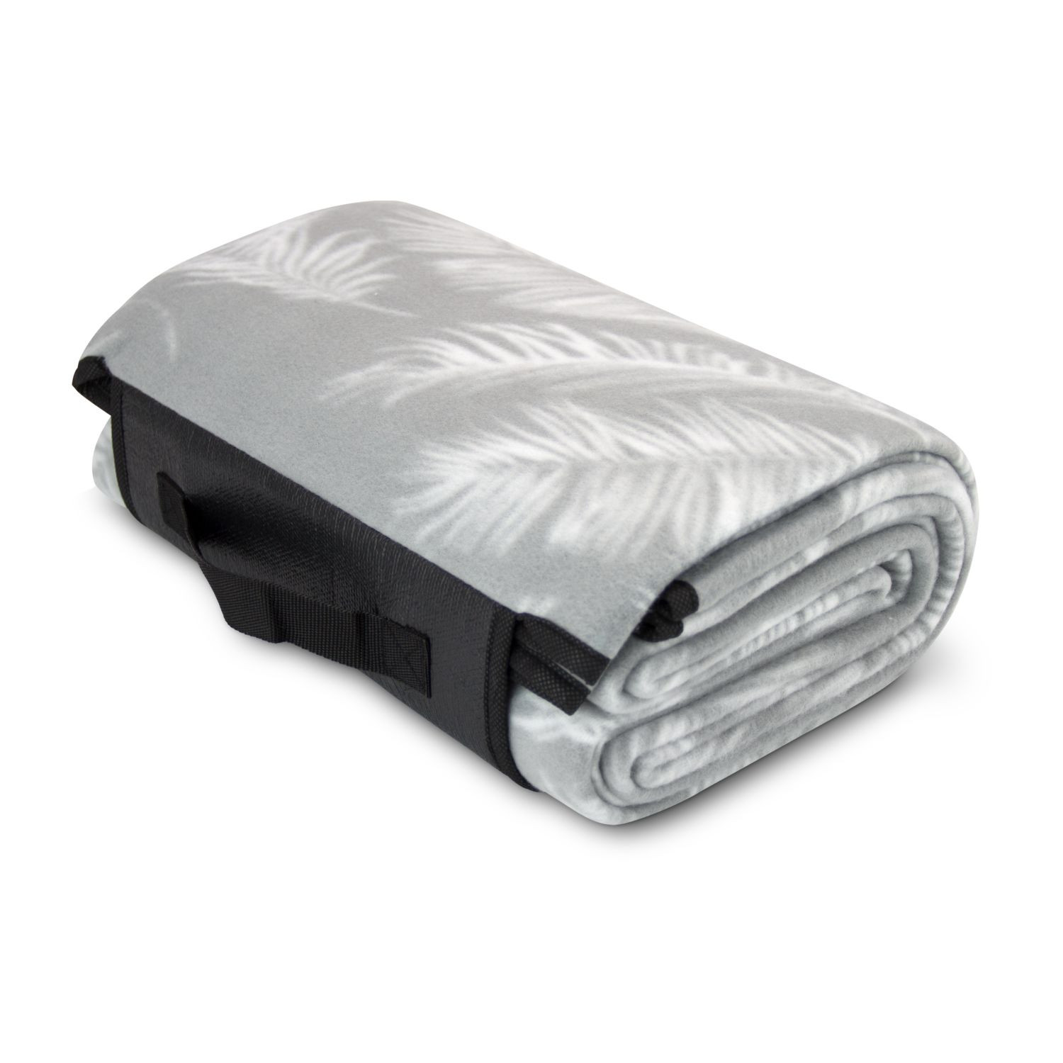 Picknickdecke mit sommerlichem Palmenblatt Motiv, für ein fröhliches und entspanntes Picknick, Oberseite aus Polar Fleece 100% Polyester, Unterseite aus 100% EPE, wasserabweisend. Genieße ein paar schöne Moment draußen im Frühling und im Sommer. (Zertifiziert nach STANDARD 100 von OEKO-TEX®)