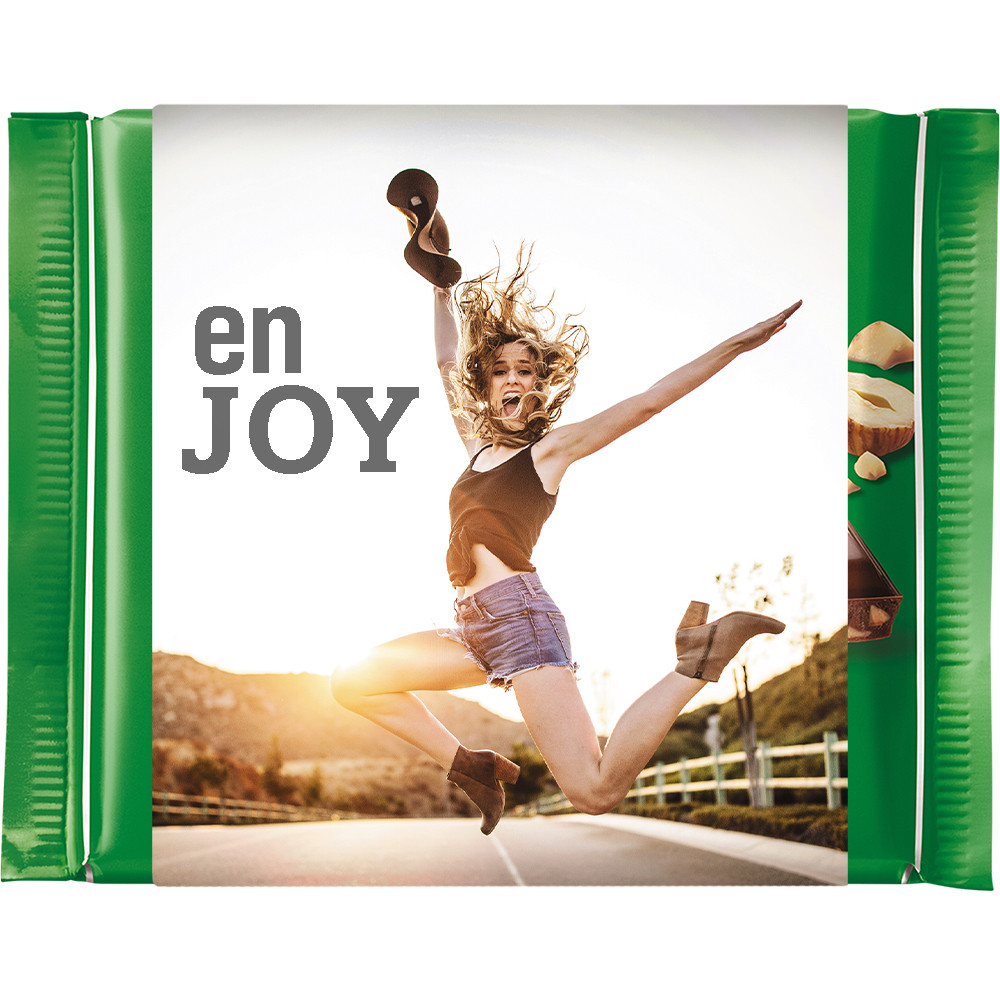 Papierbanderole. Werbeanbringung als Direktdruck in 4c individuell bedruckbar. Zutaten Ritter Sport Haselnuss-Splitter: Zucker, Kakaobutter, Haselnüsse, Kakaomasse, Vollmilchpulver, Milchzucker, Magermilchpulver, Butterreinfett, Emulgator: Lecithine (Soja), Bourbon Vanille Extrakt. Kann Spuren von Erdnüssen, anderen Schalenfrüchten, Gluten und Ei enthalten. Werbeflächengröße: 230 x 90 mm