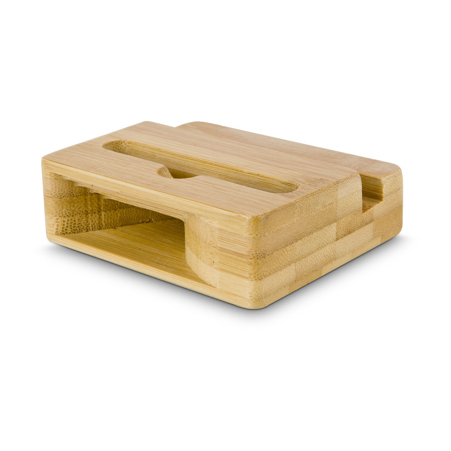 Praktische Halterung für alle gängigen Smartphones und Tablets, Handys im Quer- oder Hochformat einsetzbar, sicherer Stand ohne zu verkratzen, elegantes Bambusholz mit abgerundeten Ecken, inklusive Audio-Verstärkerfunktion für den Smartphone Lautsprecher (nur im Hochformat), ideal für unterwegs (Bambus)