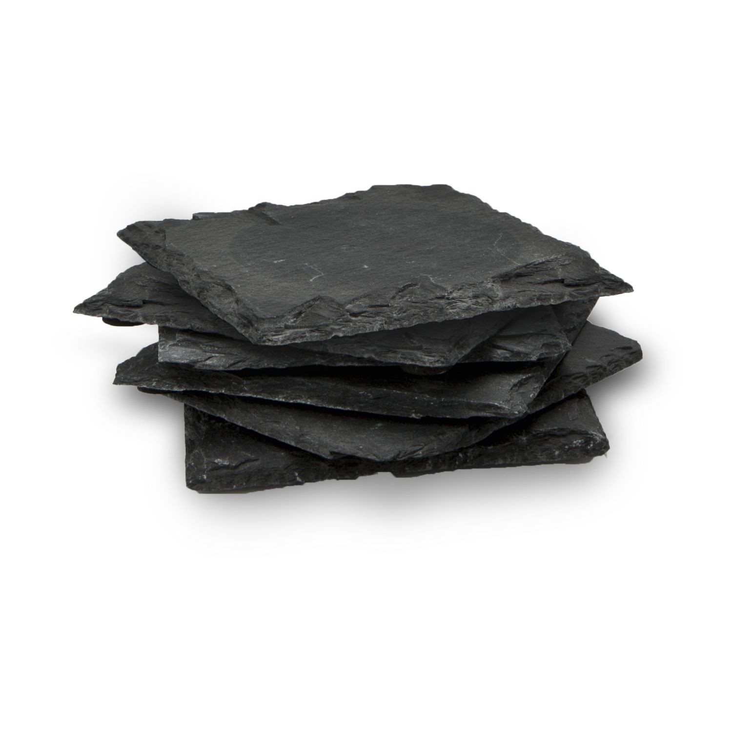 6 Untersetzer aus echtem Naturschiefer, Schutzgleiter auf der Unterseite (Schiefer, Schaumstoff)