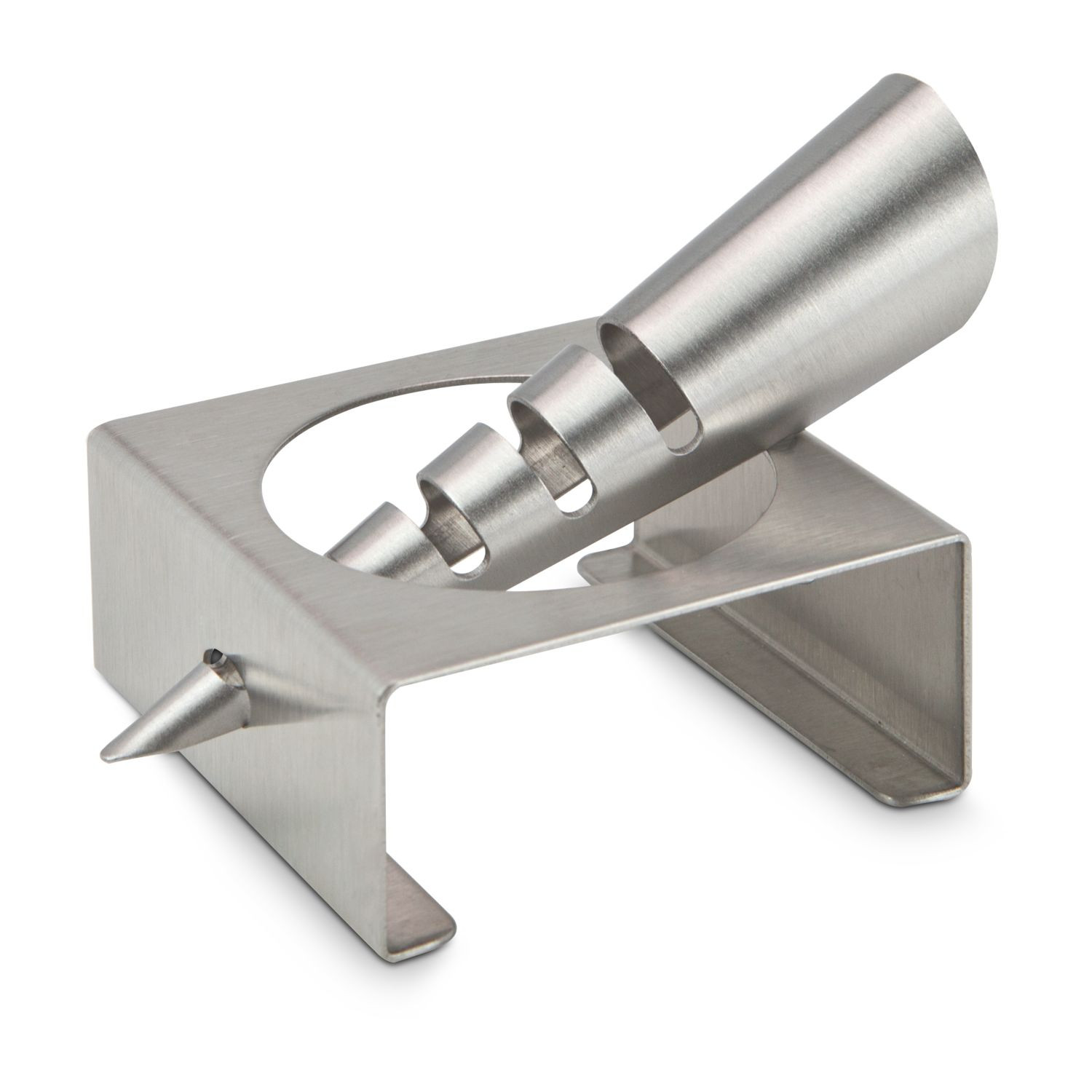 Elegante Zitronenpresse, frischer Saft direkt aus der Zitrone geträufelt (Edelstahl - seidenmatt gebürstet)
