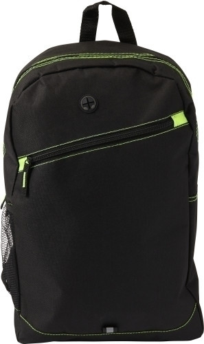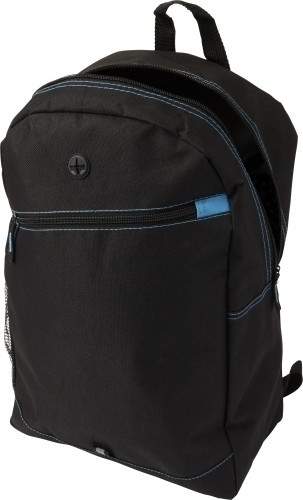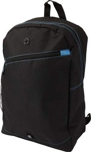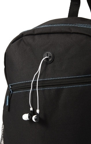 Rucksack 'Amsterdam' aus Polyester (600D), RV-Front- und Hauptfach, seitliches Netzfach, Kopfhörer-Einlass auf der Frontseite, Tragegriff, gepolsteter und verstellbarer Schultergurt