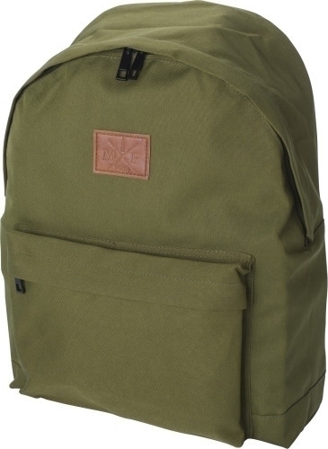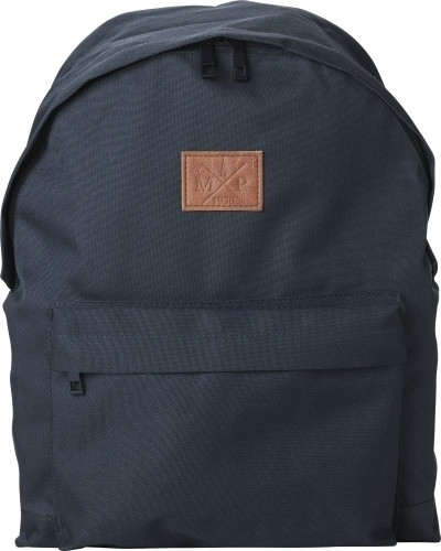 Rucksack 'Campus' aus 600D Polyester mit großem Innenfach und kleiner Fronttasche, die beide über einen Reißberschluss verfügen. Lieferung erfolgt inkl. PU-Aufnäher auf der Vorderseite.