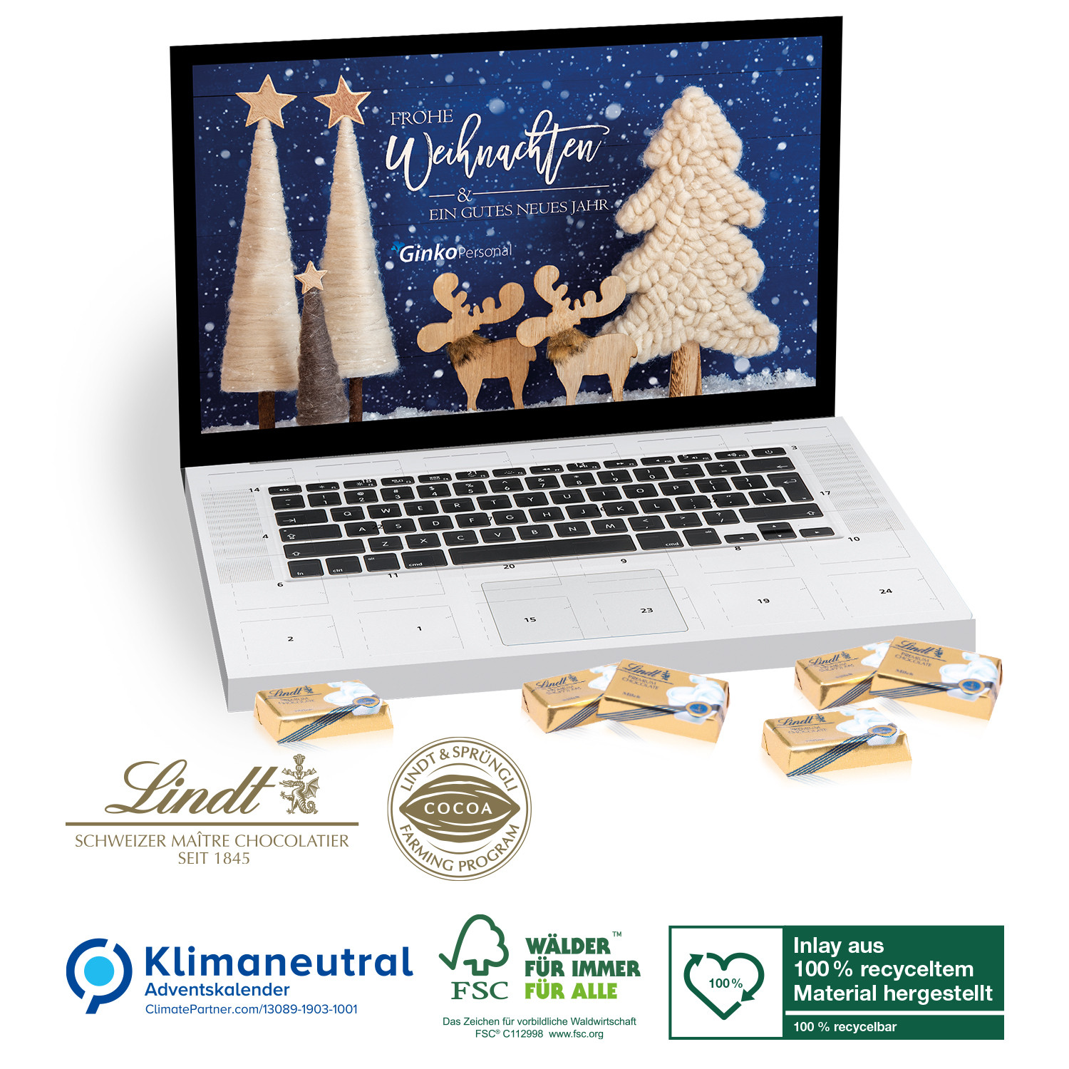 Tisch-Adventskalender Lindt Select Edition Laptop, Klimaneutral, FSC®, Inlay aus 100% recyceltem Material