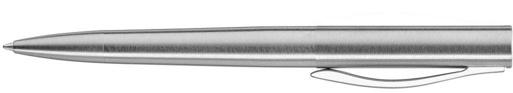 Metall-Drehkugelschreiber mit Oberfläche in Edelstahl matt gebürstet oder in Gun-Optik, Softdrehmechanik und gefedertem Clip.