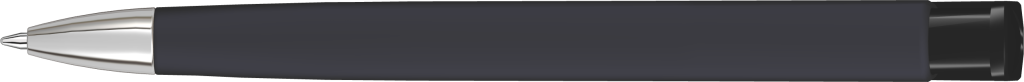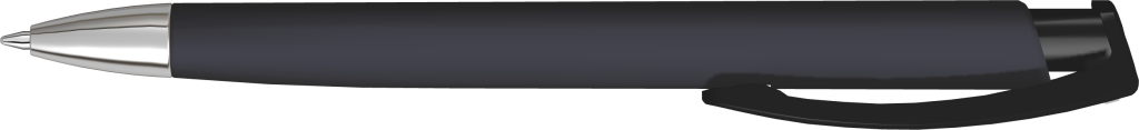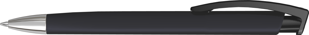 Druckkugelschreiber mit gummiertem Dreikantgehäuse, gedeckt glänzendem Clip und schwerer Metallspitze glanzverchromt.