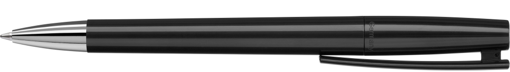 Drehkugelschreiber mit gedeckt glänzendem Gehäuse in weiß oder schwarz und silbernem Stopfen im Oberteil. Schwere Metallspitze glanzverchromt. BlackForestPen – Designed in Deutschland, gefertigt in der Schweiz, zusammengefügt und veredelt im Schwarzwald.