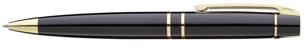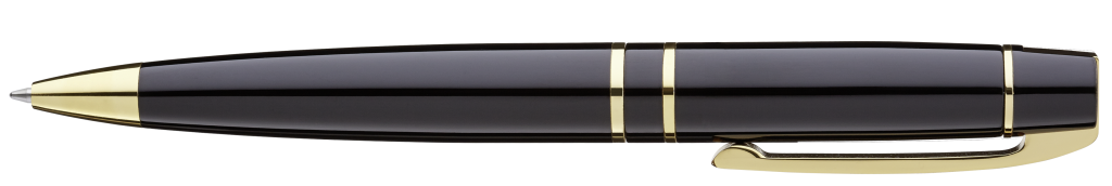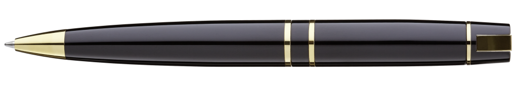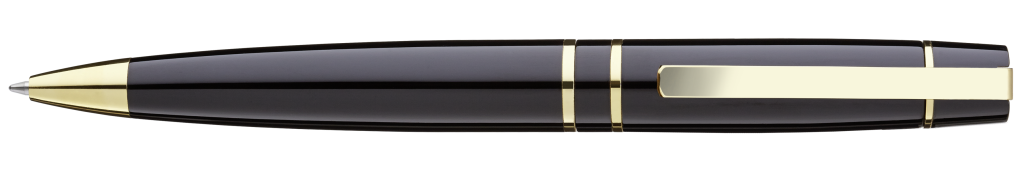 Metall-Drehkugelschreiber mit Softdrehmechanik und gefedertem Clip. Beschlagteile vergoldet.