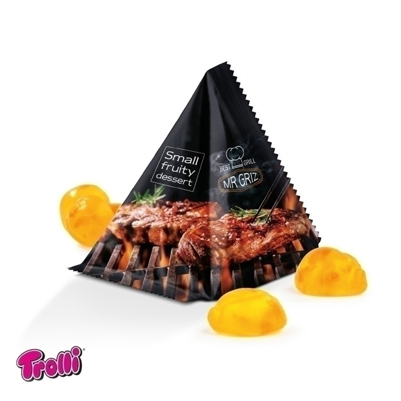 | Inhalt | Fruchtgummi der Marke Trolli mit Fruchtsaft und Fruchtstueckchen mit 10 Vitaminen in der Geschmacksrichtung Pfirsich, 15 g |