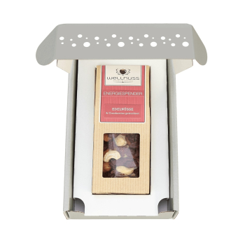Verschenken Sie dieses Jahr etwas Handgemachtes zu Weihnachten! In Zusammenarbeit mit einer Hamburger Künstlerin hat wellnuss Premium Snacks eine Weihnachts-Sonderedition mit vier handgemalten Motiven kreiert, die Sie einzeln oder im Set bestellen können. Lokale Kunst trifft auf erstklassige Kerne, Trockenfrüchte, Schokolade ... und sicherlich den Geschmack Ihrer Kunden und Geschäftspartner. Denn nicht nur optisch ist das wellnuss-Weihnachtsquartett etwas besonders. Auch der Inhalt ist einzigartig. Denn wir achten bei all unseren Snacks auf höchste Qualität – ohne Konservierungs- oder Farbstoffe, künstliche Aromen und Gentechnik. Versendet wird dieses ganz besondere Weihnachtsgeschenk budgetfreundlich und portooptimiert für Maxibriefe in einem speziellen Versandkarton.