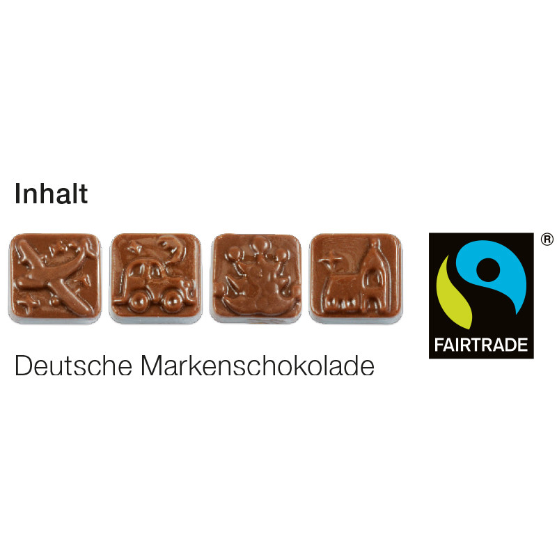Tisch Adventskalender in FSC-zertifizierter Vollkartonhülle, klimaneutral und 100 % recycelbar, individuell bedruckt. Ein praktischer, ausklappbarer Tischaufsteller ist im Rücken integriert . Inhalt: 24 Alpenmilch Schokoladentäfelchen mit Fairtrade-Zutaten in deutscher Markenqualität, 50 g Saisonartikel - solange der Vorrat reicht!
