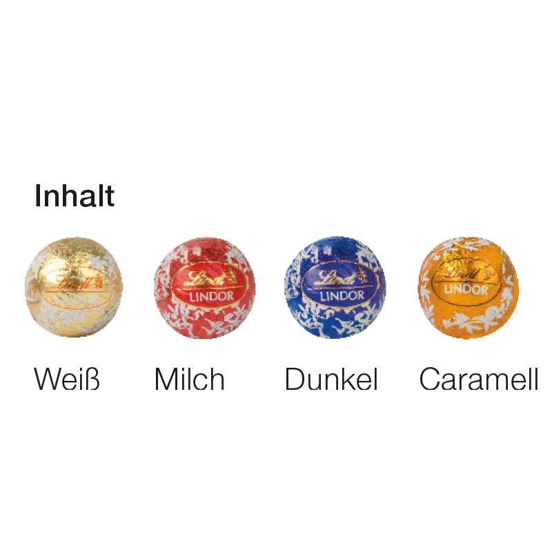 Inhalt 24 Lindor Mini Kugeln der Marke Lindt & Sprüngli, bunt gemischt, 109 g. Saisonartikel - solange der Vorrat reicht!