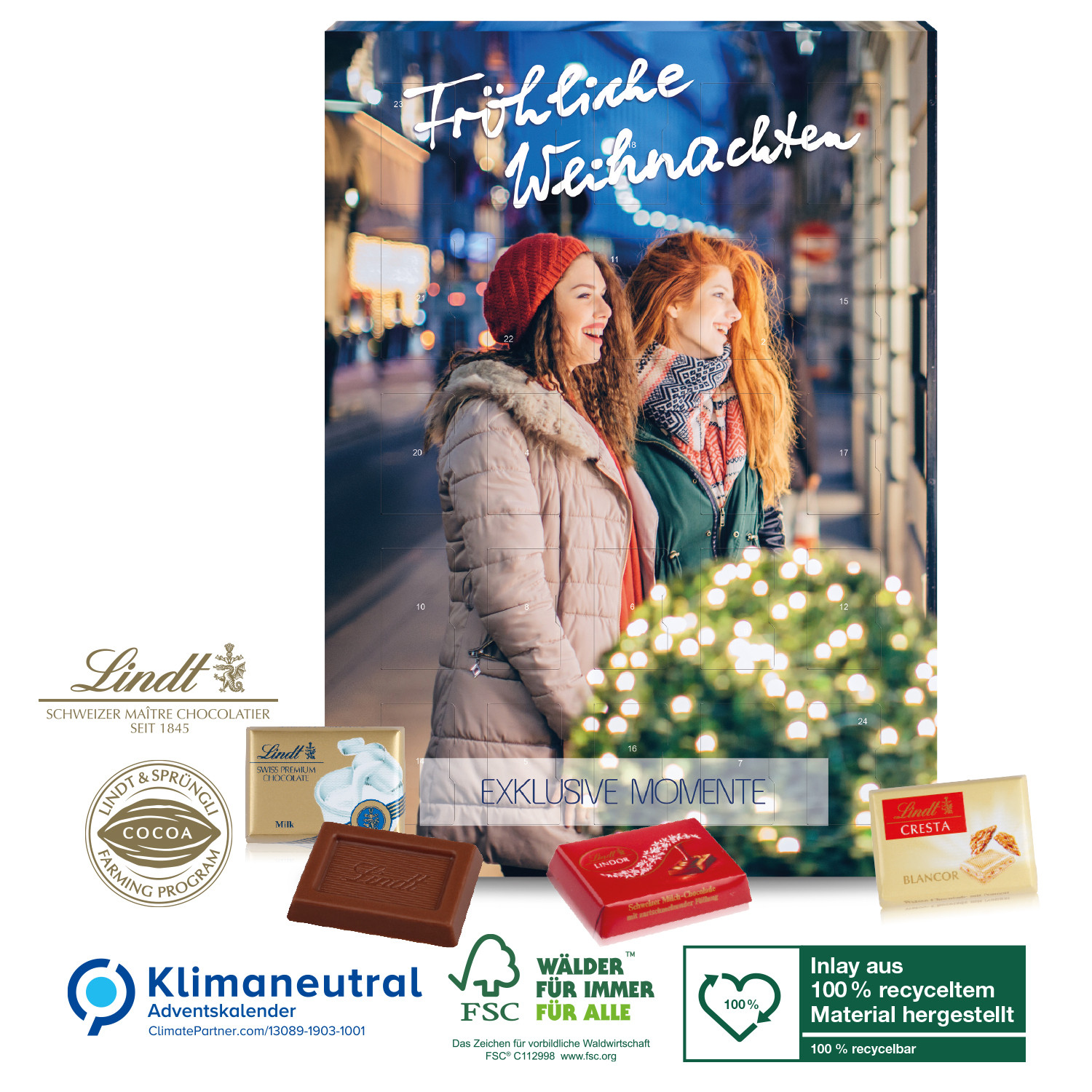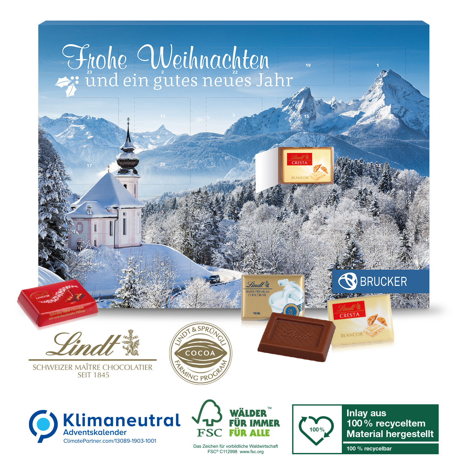 Wand-Adventskalender Lindt Exklusiv, Klimaneutral, FSC®, Inlay aus 100% recyceltem Material
