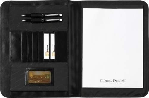 Charles Dickens Schreibmappe 'Doughty' mit Metall-Label und Hülle aus Kunstleder, DIN A4-Format, 11 Einsteckfächer, inklusive Schreibblock