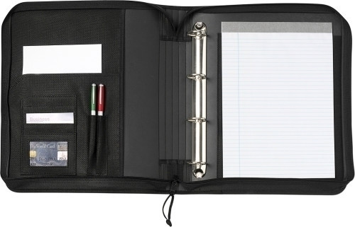 Dokumentenmappe 'Singapur' aus 600D Polyester/PU, DIN A4-Format, mit Tragegriff und Reißverschluss, inkl. Register, 7 Einsteckfächer, Ringbuch, 2 Stifthaltern und Schreibblock
