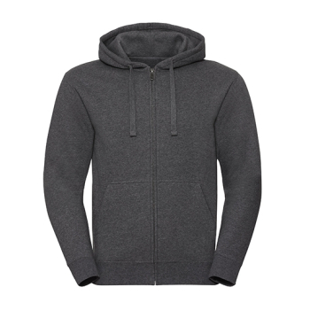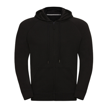 Verdeckter Metall-Reißverschluss für bessere Bedruckbarkeit | Doppelte Kapuze mit gleichfarbiger, flacher Kordel | Single-Jersey Nackenband | Zwei aufgesetzte Taschen | Überall Doppelnähte | Taillen- und Armbund aus Baumwolle/Elasthan Ripp