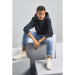 Gerader Schnitt | Feine 100%ige Baumwolloberfläche | Nackenband in Fischgrät-Optik | Seitennähte für optimale Passform | Saum und Bündchen weiter geschnitten und mit Elasthan | Decknähte an Armausschnitten, Bündchen und Saum | Keine Zugbänder | Doppellagige Kapuze | Kängurutasche | Angerauter Fleece-Stoff | 1x1 Ripp-Bund und -Bündchen mit Elasthan