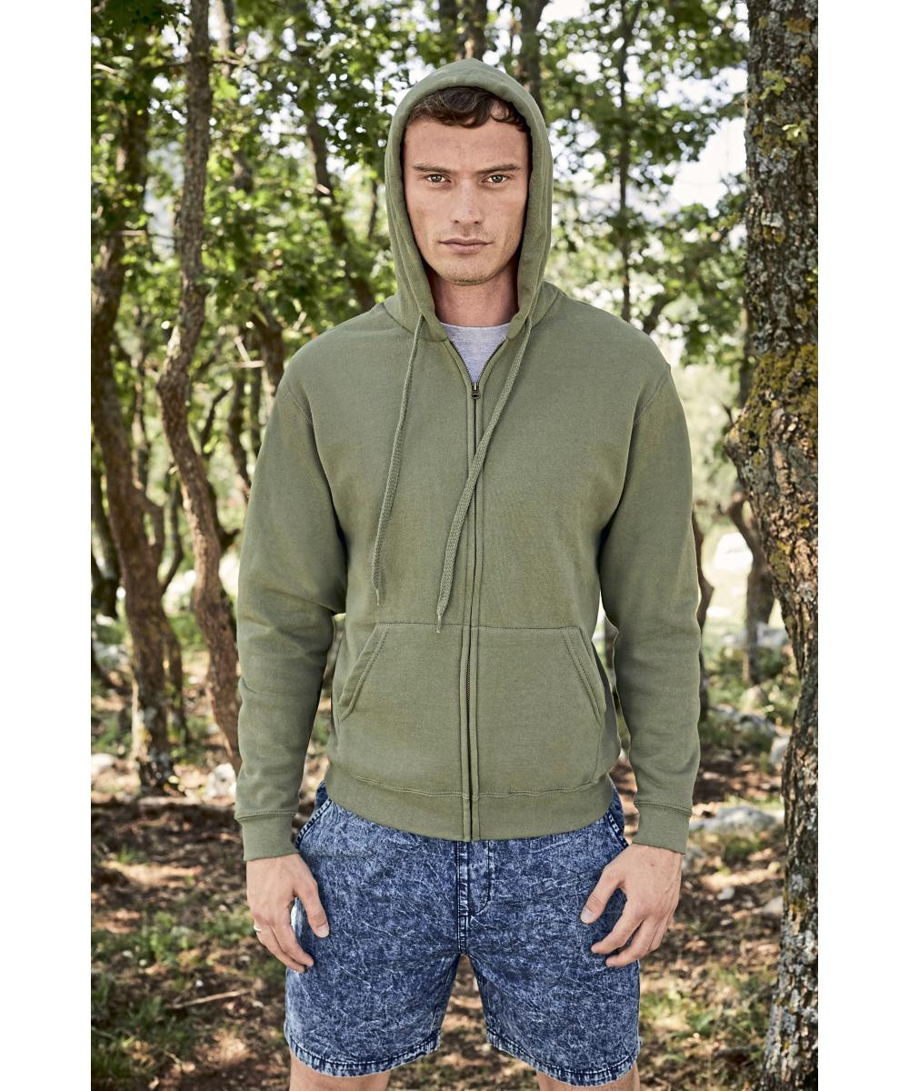 Verdeckter Metall-Reißverschluss für bessere Bedruckbarkeit | Doppellagige Kapuze mit gleichfarbigem, flachem Kordelzug | Single-Jersey Nackenband | Zwei aufgesetzte Taschen | Bündchen aus Baumwolle/Lycra® Ripp