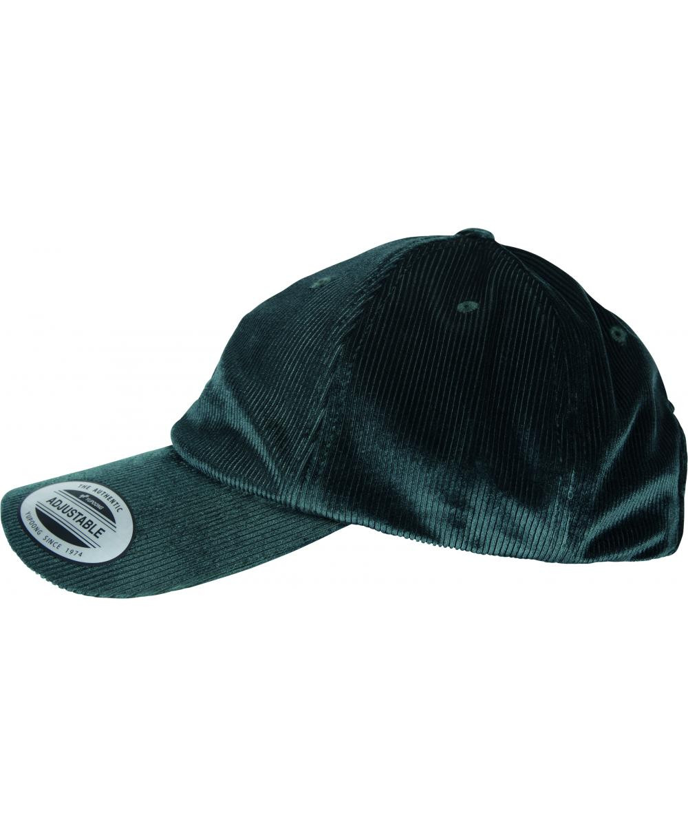 Leicht glänzendes Cordsamt | Weiche Front | Vorgebogener Schirm | Größenverstellbarer Leder-Strap mit Metall-Clip | Gestickte Belüftungsösen