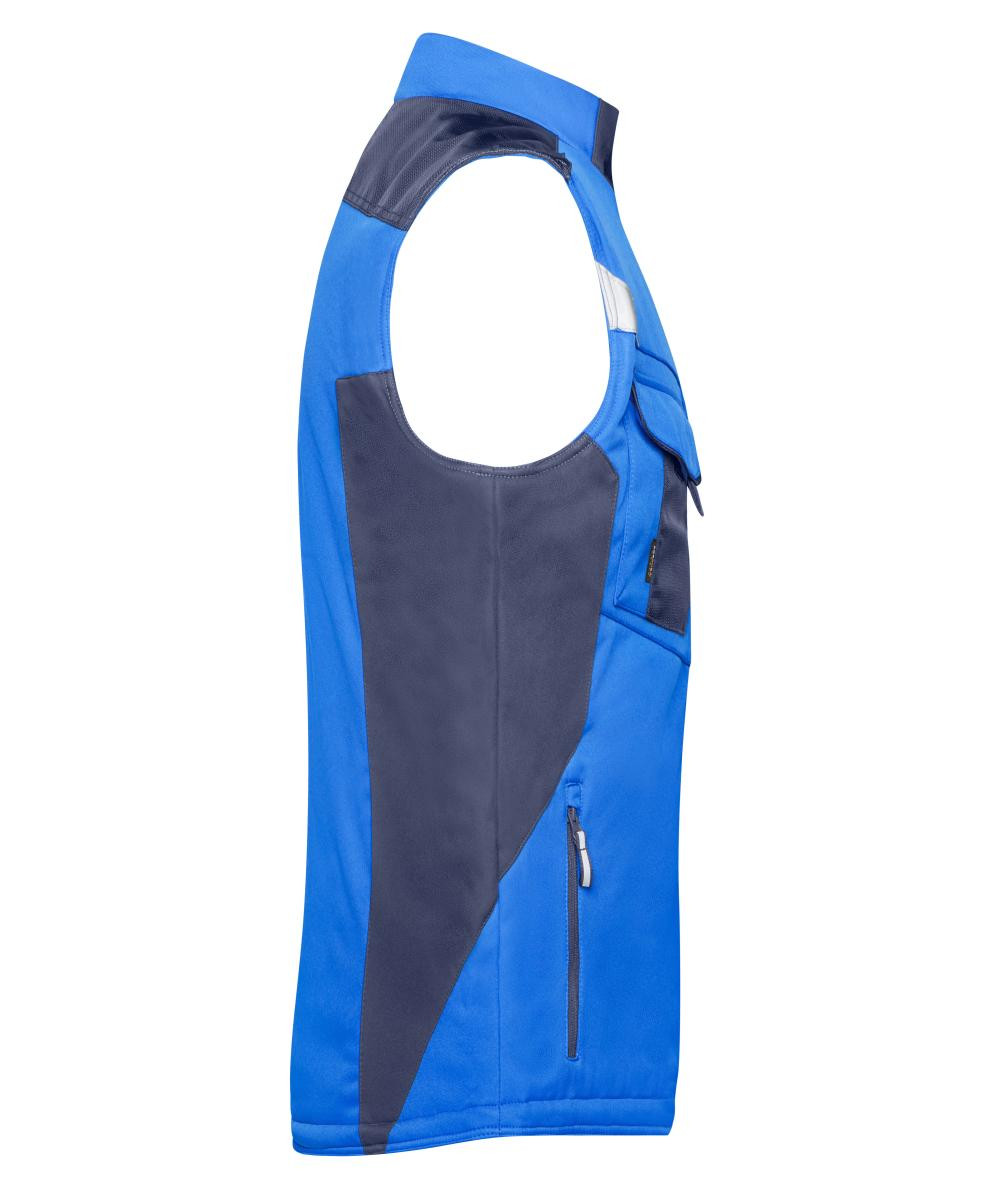 Professionelle Softshell-Weste mit warmem Innenfutter | Robustes, strapazierfähiges Softshell-Material | Wind- und wasserabweisend (2.000 mm Wassersäule) | Atmungsaktiv und wasserdampfdurchlässig (2.000 g/m²/24h) | Stehkragen innen mit weichem Fleece | Schulterbereich mit CORDURA® verstärkt | Durchgehend unterlegter Reißverschluss mit Windschutzblende | Seitentaschen, Brusttasche und Innentasche mit Reißverschluss | Brusttasche mit Klappe, Handytasche innen | Reflektions-Elemente (ohne Schutzfunktion/ keine PSA) am Vorder- und Rückenteil | Reißverschluss zur Rückenveredelung