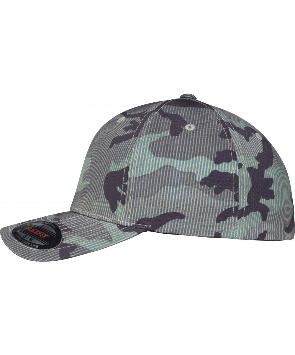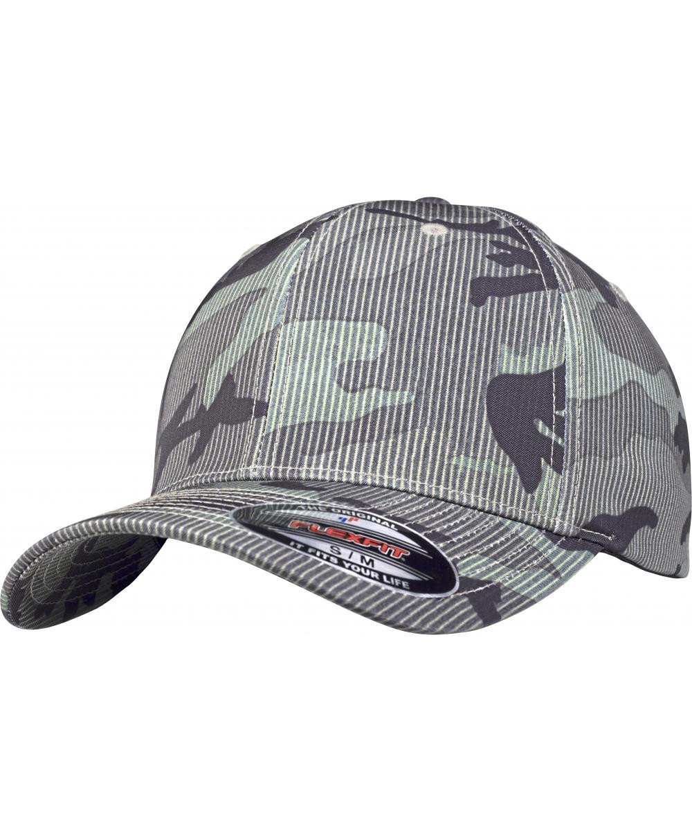 Camo-Print plus dezentes Streifen-Design | Leicht vorgebogener Schirm | Patentierte Flexfit-Technologie