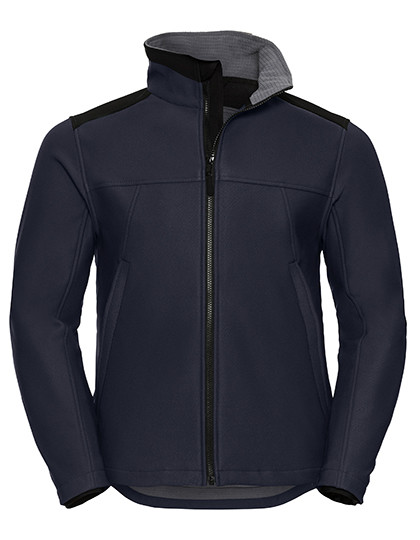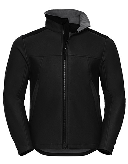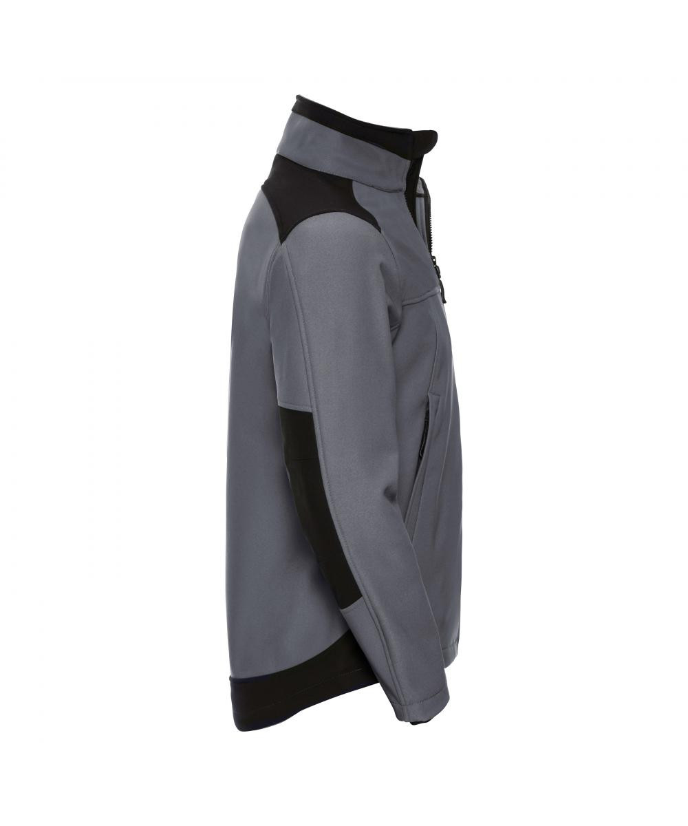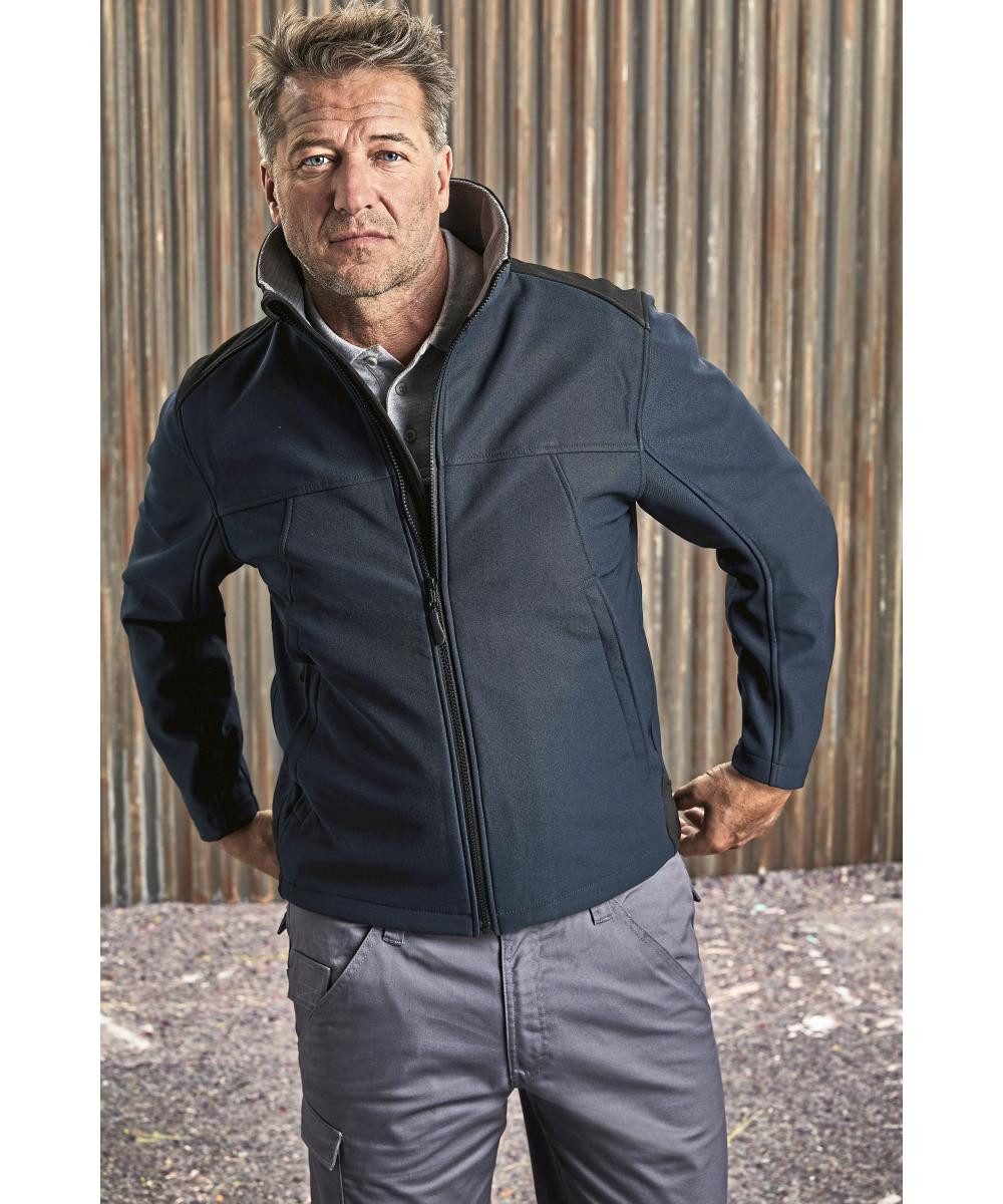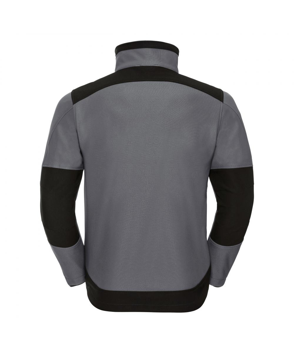 Softshell-Material 3-lagig mit 4-Wege-Stretch, wasserabweisend bis 5.000 mm und atmungsaktiv bis 5.000 g/m²/24h (verschweißte Membran) | Gewebeoberfläche mit Abperleffekt durch Du Pont™Teflon® DWR-Beschichtung | Ergonomischer Schnitt, vorgeformte Ellbogen, durchgehende Schulterpartie - keine Naht auf der Schulter | Schulterpartie, Ellbogen, Kragenbund und rückseitiger Bund in Kontrastfarbe Schwarz (schwarze Jacke vollständig in Schwarz) | Belastbarer YKK Vislon-Reißverschluss mit Zugband vorne, innenliegende Regenblende und Reißverschluss-Schutz am Kragen | Verdeckte, vertikale Reißverschluss-Taschen vorne, mit Zugband und grosszügigem Zugang auch mit Arbeitshandschuhen zu bedienen | Ärmelbund mit innenliegendem flexiblen Einsatz für komfortablen Wetterschutz | Unterteilte Innentasche | Kordelzug im Bund | Verschweißtes, strukturiertes Microfleece-Innenfutter (100% Polyester)