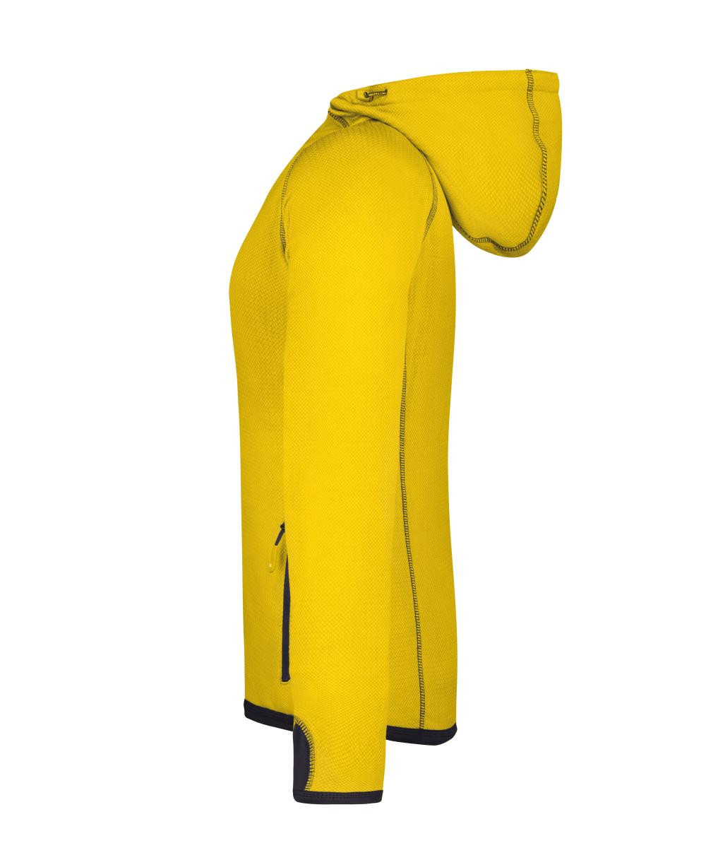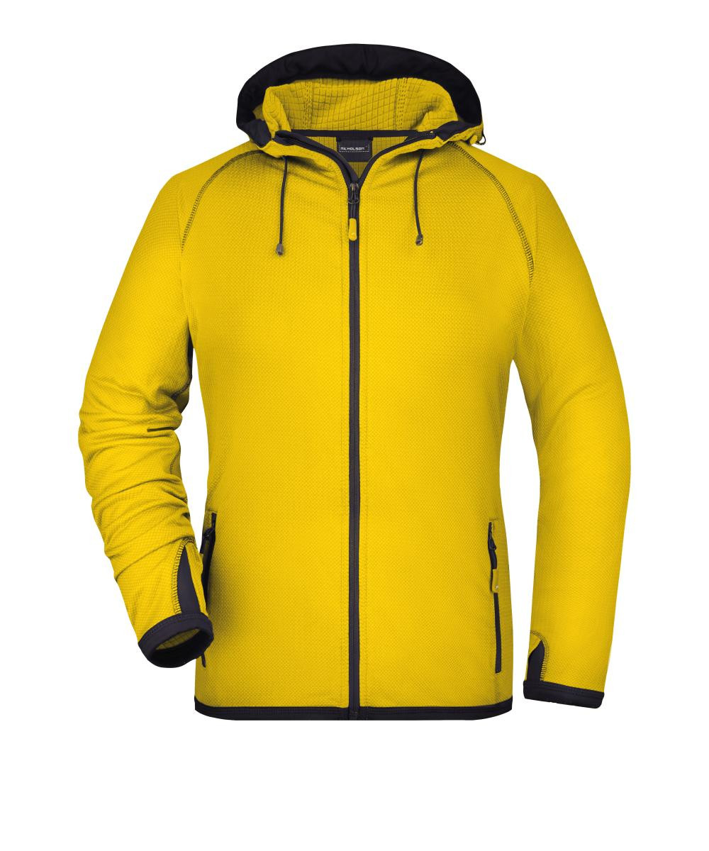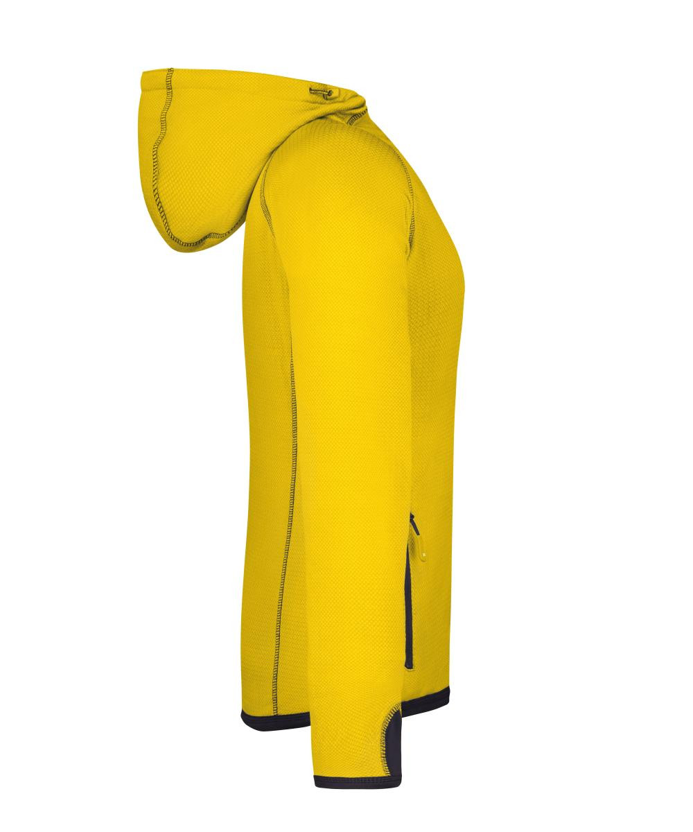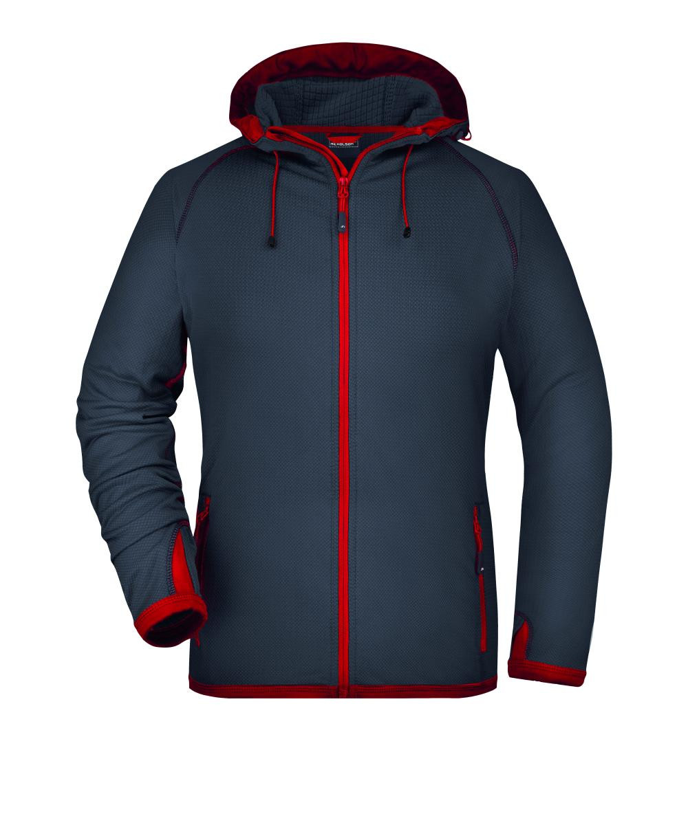 Modische Fleece Kapuzenjacke | Angenehm weiche, pflegeleichte Qualität | Außenseite glatt mit dezentem Alloverdruck, innen angerautes Fleece in Rautenoptik | Durchgehend unterlegter Reißverschluss mit Kinnschutz | Angeschnittene Kapuze mit elastischer Kordel und Stopper | 2 Seitentaschen mit Reißverschluss | Kontrastfarbige Flatlocknähte | Daumenschlupf | Leicht tailliert