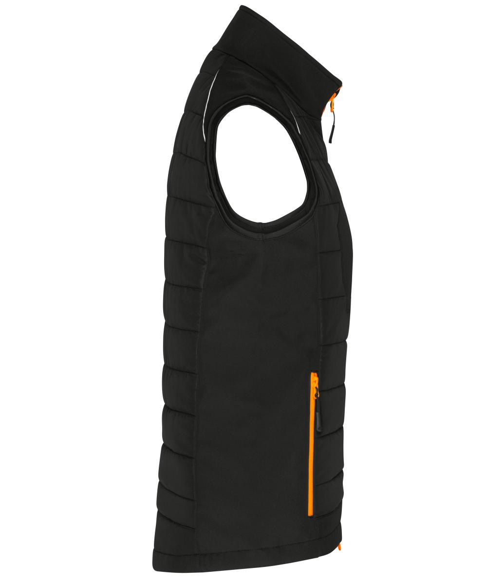 Oberstoff + Futterstoff: recyceltes Polyester, Wattierung: Polyester | Softshell-Weste im attraktiven Materialmix | Pflegeleichtes 2-Lagen Softshell-Material kombiniert mit gesteppten Einsätzen im Vorder- und Rückenteil | Wasser- und schmutzabweisend durch BIONIC-FINISH®ECO | Wärmende DuPont™Sorona® Wattierung | Stehkragen | Durchgehend unterlegter 2-Wege Reißverschluss mit Windschutzblende und Kinnschutz | Weitenregulierung am Saum | Seitentaschen und Brusttasche mit Reißverschluss, eine Innentasche mit Klettverschluss | Reflektions-Elemente (keine Schutzfunktion, keine PSA) an Vorder- und Rückenteil | Reißverschluss zur Rückenveredelung | YKK-Reißverschlüsse | Leicht tailliert