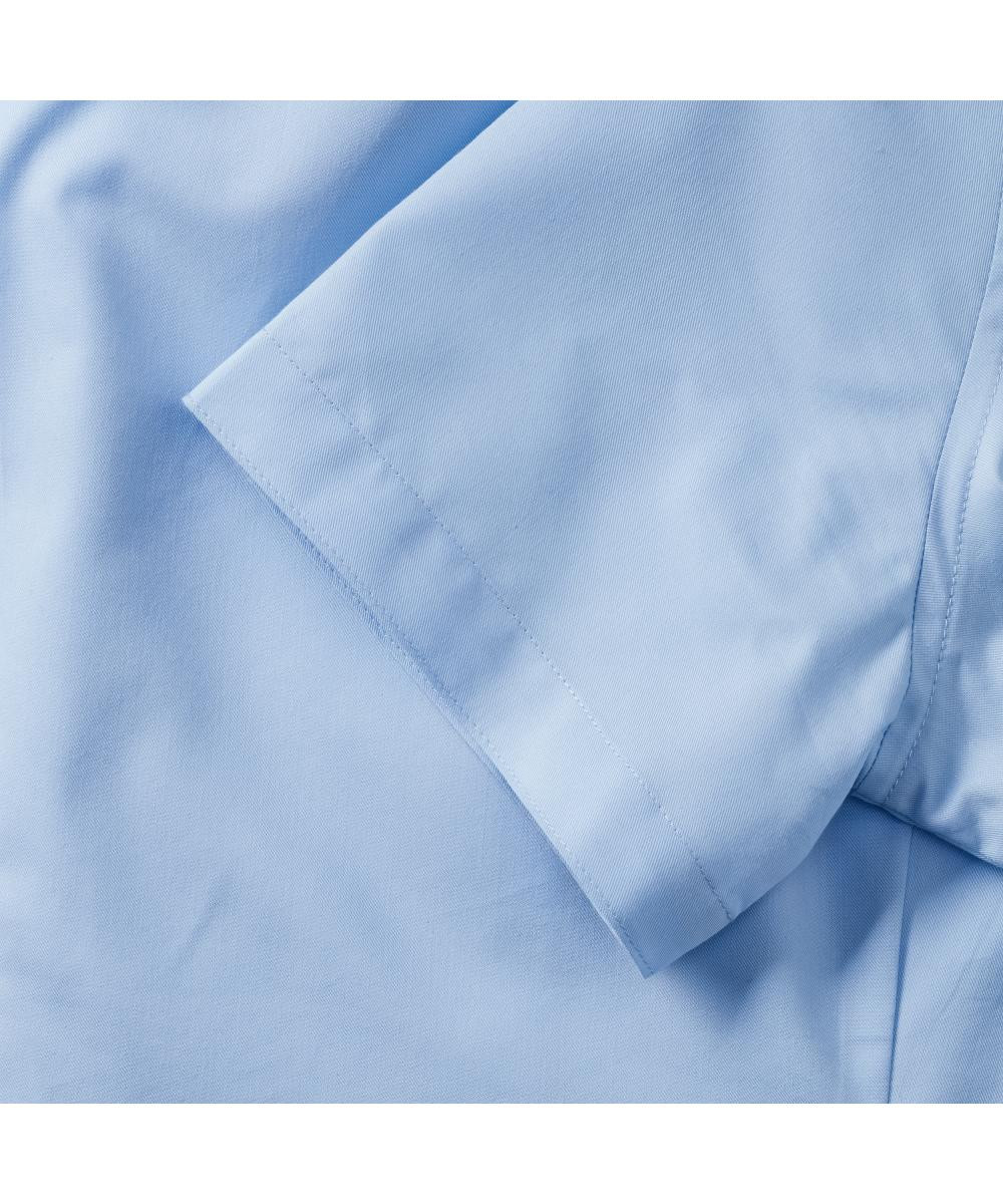 70% Baumwolle / 30% Coolmax®-Polyester | Pflegeleicht (Easy Care) | Schlichter, moderner Kragen | Atmungsaktive und feuchtigkeitsregulierende Coolmax®-Faser | Strapazierfähiges Mikro-Twill | Edle Chambray-Optik in Light Blue | Hohe Waschbeständigkeit und Farbechtheit | Abnäher vorn und hinten für eine taillierte Passform | Abgerundeter Saum