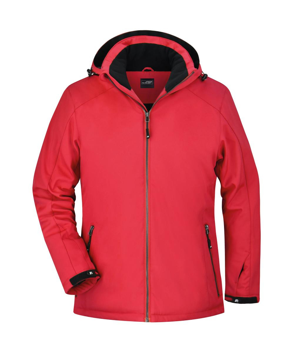 Elastische, gefütterte Softshelljacke | Wind- und wasserdichtes 3-Lagen Funktionsmaterial mit TPU-Membran (5.000 mm Wassersäule) | Atmungsaktiv (2.000 g/m²/24h) | Abzippbare, gefütterte Kapuze mit mehrfacher Weitenregulierung | Durchgehend unterlegter Frontreißverschluss mit Kinnschutz | Unterarmreißverschlüsse für zusätzliche Belüftung | 2 seitliche Taschen mit Reißverschluss, kleine Ärmeltasche mit Reißverschluss | Innentasche mit Reißverschluss, Handytasche innen | Regulierbarer Schneefang, Daumenschlupf | Elastische Kordel mit Stopper an Saum und Kapuze | Reißverschluss zur Rückenveredelung | Taillierter Schnitt