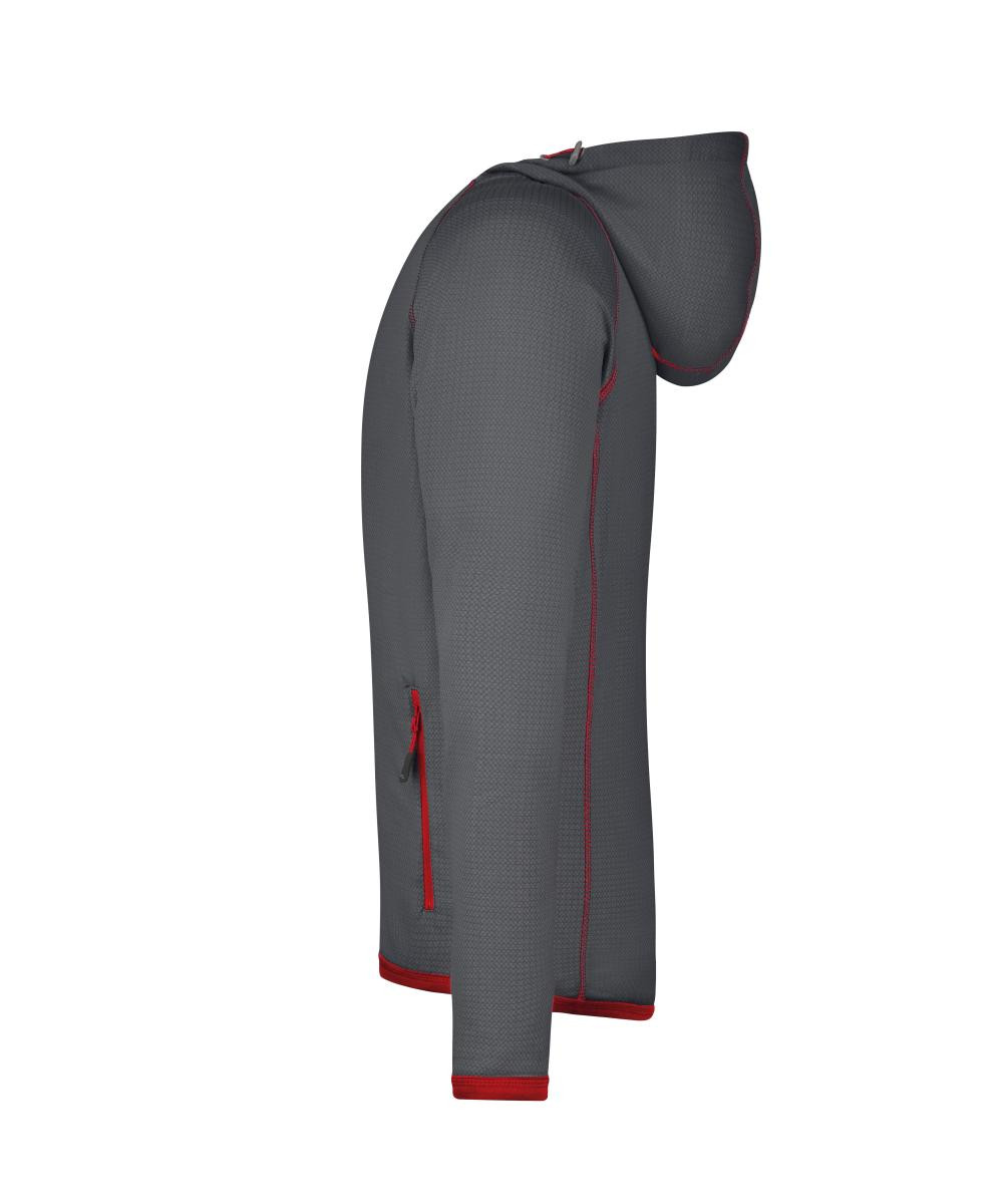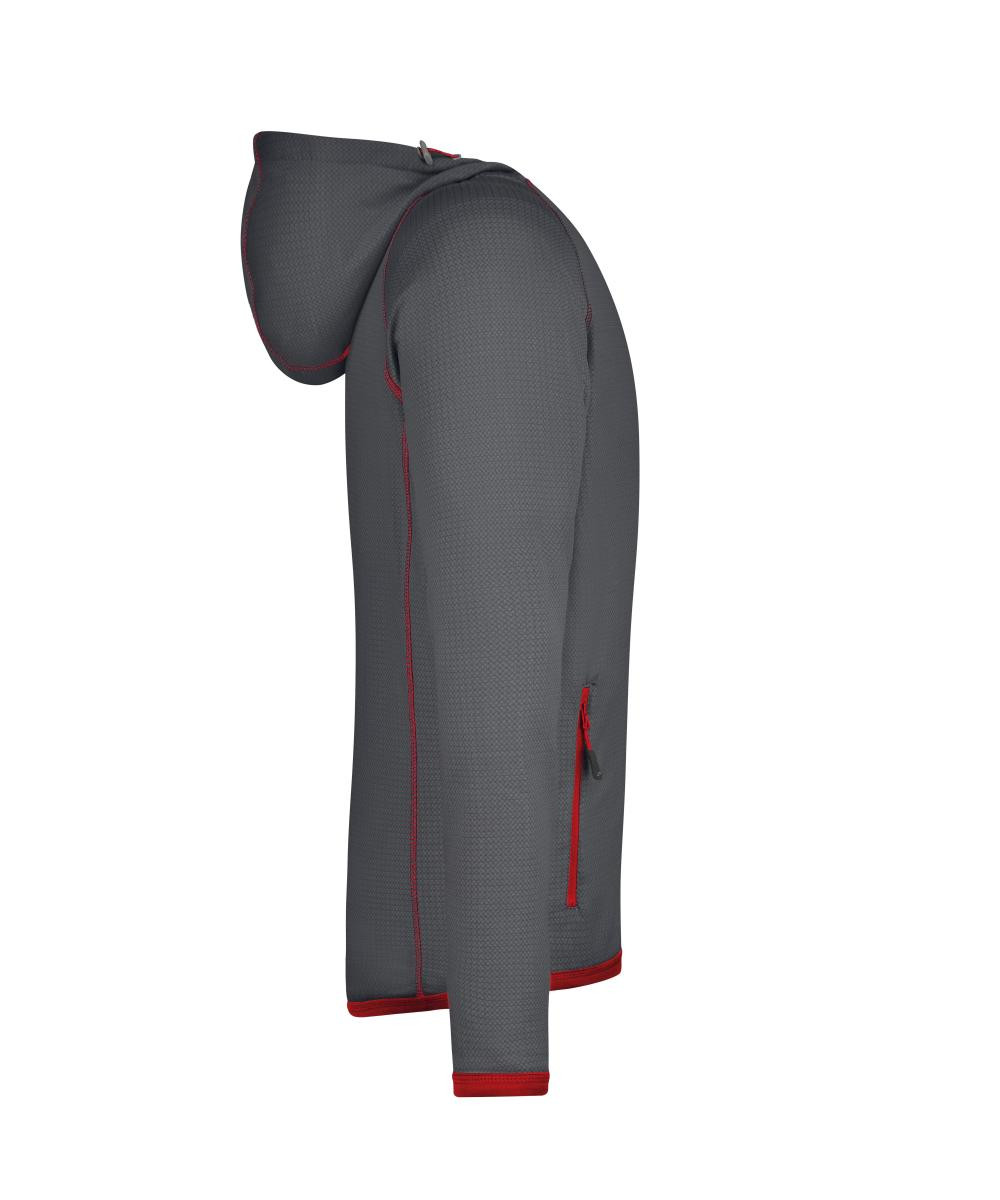 Modische Fleece Kapuzenjacke | Angenehm weiche, pflegeleichte Qualität | Außenseite glatt mit dezentem Alloverdruck, innen angerautes Fleece in Rautenoptik | Durchgehend unterlegter Reißverschluss mit Kinnschutz | Angeschnittene Kapuze mit elastischer Kordel und Stopper | 2 Seitentaschen mit Reißverschluss | Kontrastfarbige Flatlocknähte | Daumenschlupf